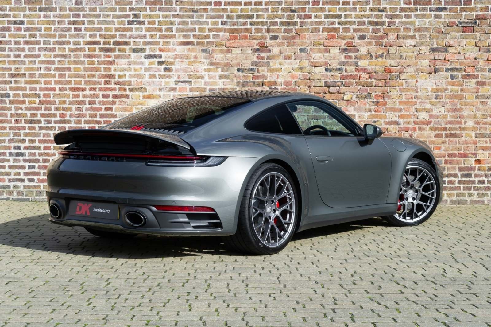 This UK supplied 992 Carrera S was delivered new in May this year and has covered just 1,425 miles since. Finished in the launch hue of Aventurine Green Metallic over Slate Grey leather interior, this car benefits from a number of great options including the larger RS Spyder Design wheels to help fill those large arches, the electric tilt/slide sunroof and the upgraded 14-way *electric* comfort seats. This example also features the desirable Sports Exhaust and upgraded Bose Surround Sound Options.
