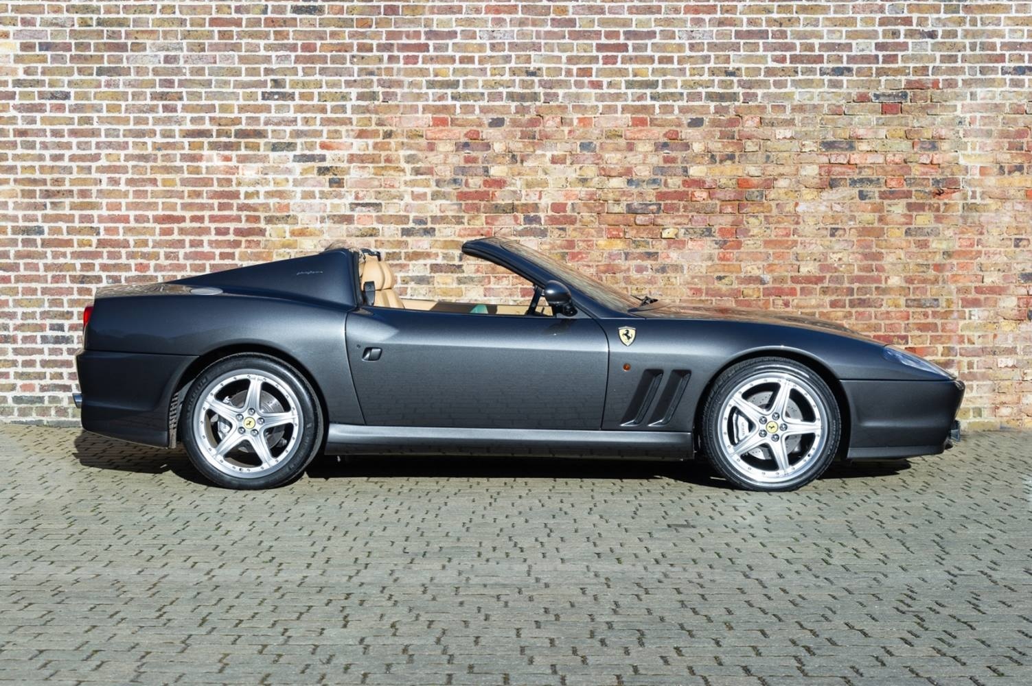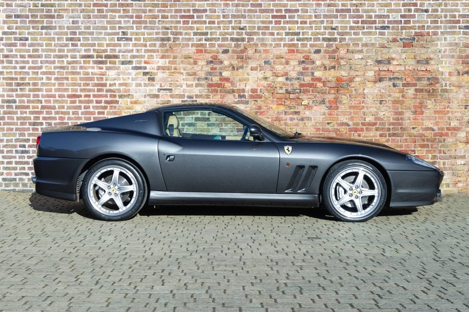 This elegant Superamerica is presented in Grigio Silverstone with a complimentary Tan leather interior delivered new by Maranello Concessionaires in March 2006. One of just 62 Right Hand Drive 575 SAs to be delivered in the UK, this example benefits from the electric Daytona seats as well as Scuderia windshields, Aluminium coloured calipers which sit behind the 19” Split Rims. Significantly the coloured calipers represent the important Fiorano Handling Package. This highly sought-after factory option cleverly increases the 575s ability to steer more compliantly at speed through means of a remapped ecu, solely for the power steering. Furthermore attention is focused on the suspension with the springs and anti-roll bars being upgraded to accommodate a more improved feel and driver confidence. This combined with the change of calipers and brake pads helps the set-up feel much more complete.