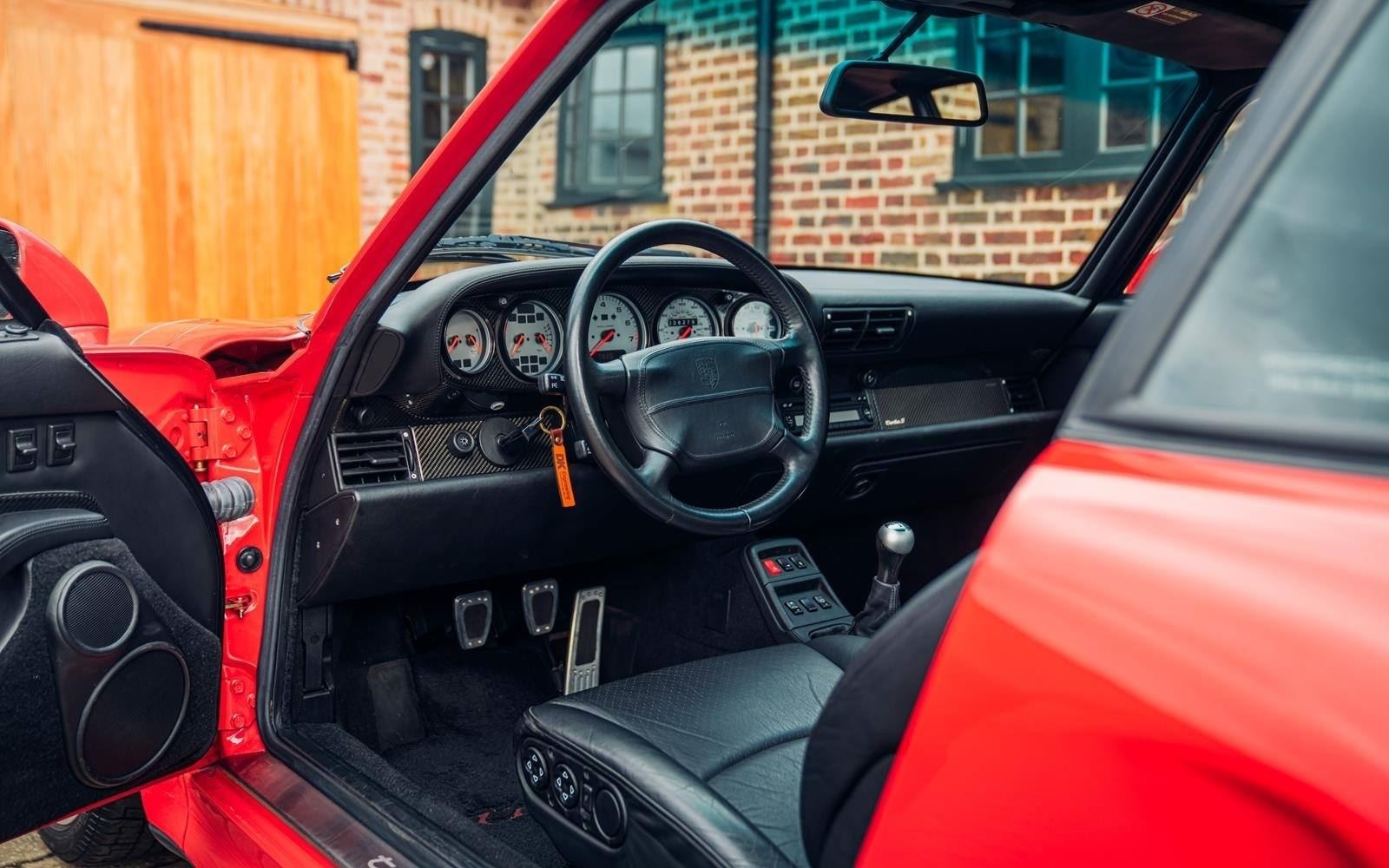 Unique to these cars, the body-coloured rear wings were fixed in place and housed the turbocharger intercoolers. For the 1997 model year, Porsche produced the most exclusive road-going 993 of all and what became the last air-cooled 911 Turbo - the Turbo S. Based on the standard Turbo, the Turbo S was enhanced with a number of special features Including: the Aerokit II front and rear spoilers, Carbon Fibre interior features, brake cooling ducts alongside the front indicators, uprated yellow coloured 6 pot callipers an additional oil cooler, stiffer suspension that made the car sit 15mm lower and engine cooling scoops carved out from the rear wings. The wheels were uniquely coloured on the Turbo S. Mechanically, the 3.6-litre twin-turbo flat-six was pumped up to 450bhp by incorporating larger K-24 turbos and a different exhaust making it the firm's most powerful production engine yet. Just 345 examples were manufactured, each one hand-finished at Porsche Exclusive prior to delivery.