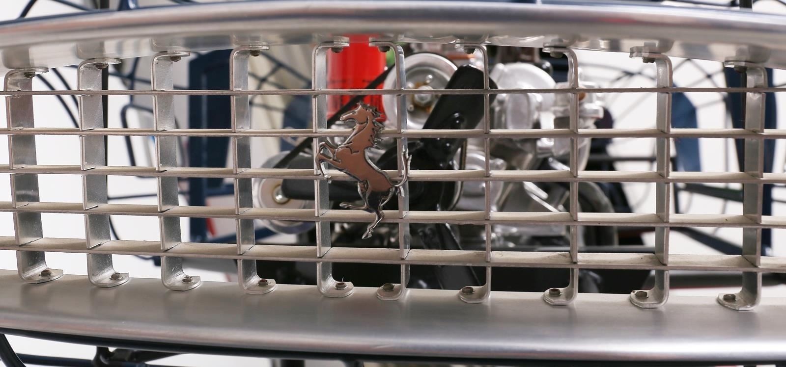 Utilising many of the same practices and materials as Ferrari would in period, the recreation of the Colombo V12 powerplant uses over 240 parts, each one hand-formed and sand-cast aluminium and stainless steel. Held together with no fewer than 470 screws, neither the engine nor trellis bodywork use any adhesives. The fully-synchronised engine rotates in exact firing order with the 12 separate pistons linked as they would be in full scale, by connecting rods to the crankshaft. Additionally linked by a series of internal gears, the outside pulleys link to the rotating fan belt. The chassis too is a faithful recreation of the original Ferrari layout.