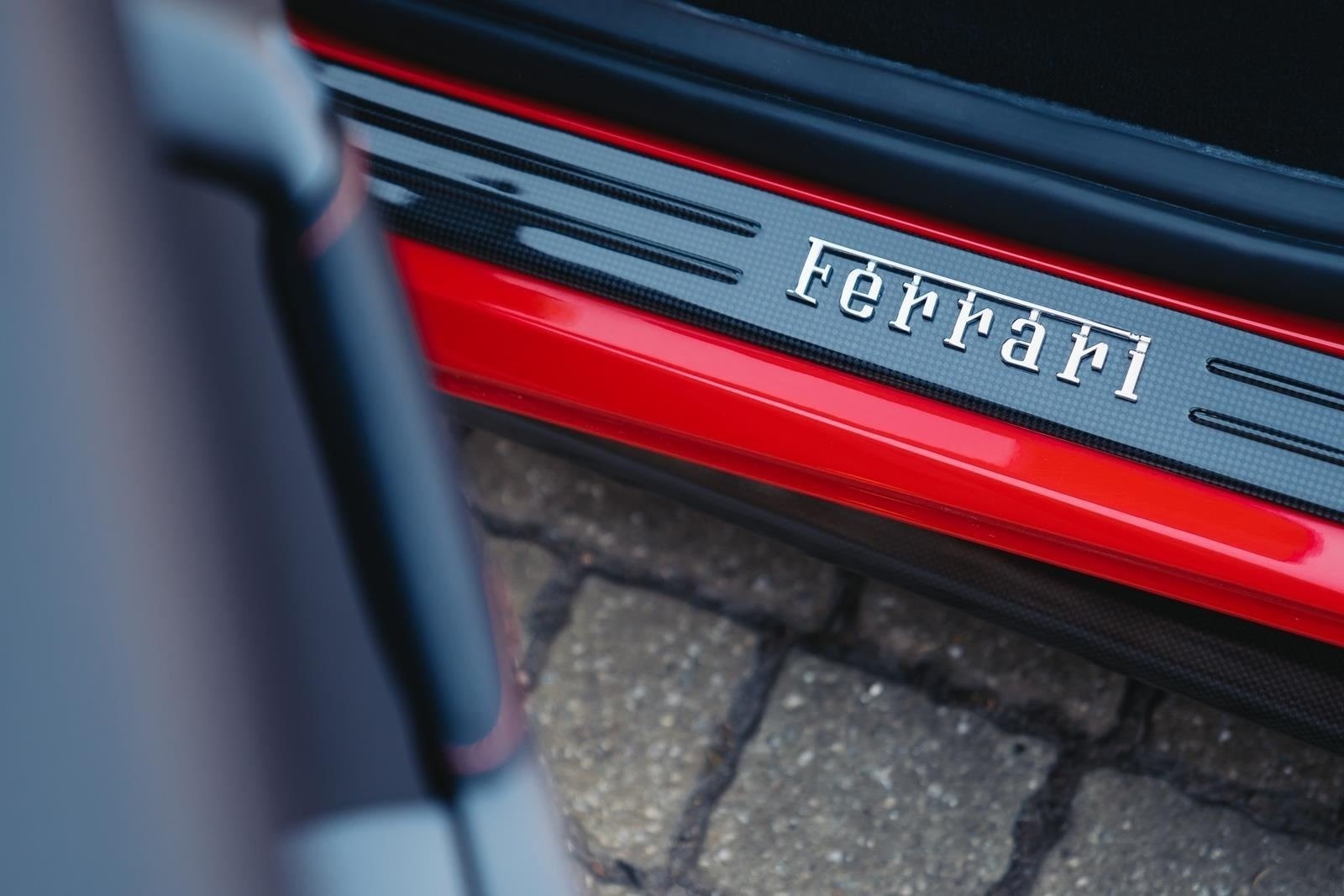 Fitted with a number of desirable options, this example sees both the Carbon Fibre Exterior Package and the Carbon Fibre Racing Package fitted to the car. Brake Callipers in Rosso behind Diamond-Cut 20’’ Forged Wheels with Carbon Fibre centre caps complete the look. Scuderia shields and the desirable Sports Exhaust is fitted.