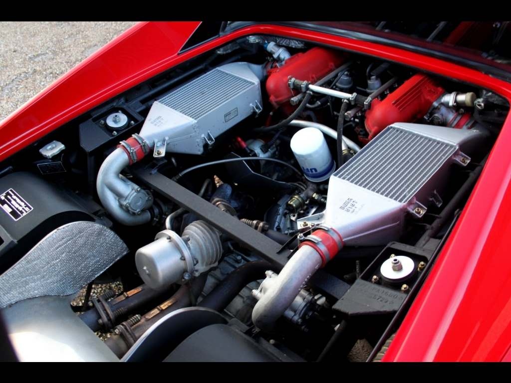 The 288 was the first mid-engined Ferrari street car to be fitted with a longitudinally mounted engine, this having been an all-alloy Tipo F114B 90° V8 with a capacity of 2855cc producing a phenomenal 400bhp being developed at 7000rpm thanks to twin IHI turbochargers at 0.8 bar while Behr intercoolers cooled the charge air. As a result zero to sixty MPH was just 4.8 seconds and a top speed of 189mph was possible. These astounding figures meant Ferrari's 288 GTO arrived as the fastest production car in the world on it's 1984 launch. As a nod to its predecessor, three vertical lourves reminiscent of the Bizzarrini-designed 250 GTO were carved into the rear wings while that flip up rear spoiler flared the tail quite magnificently.