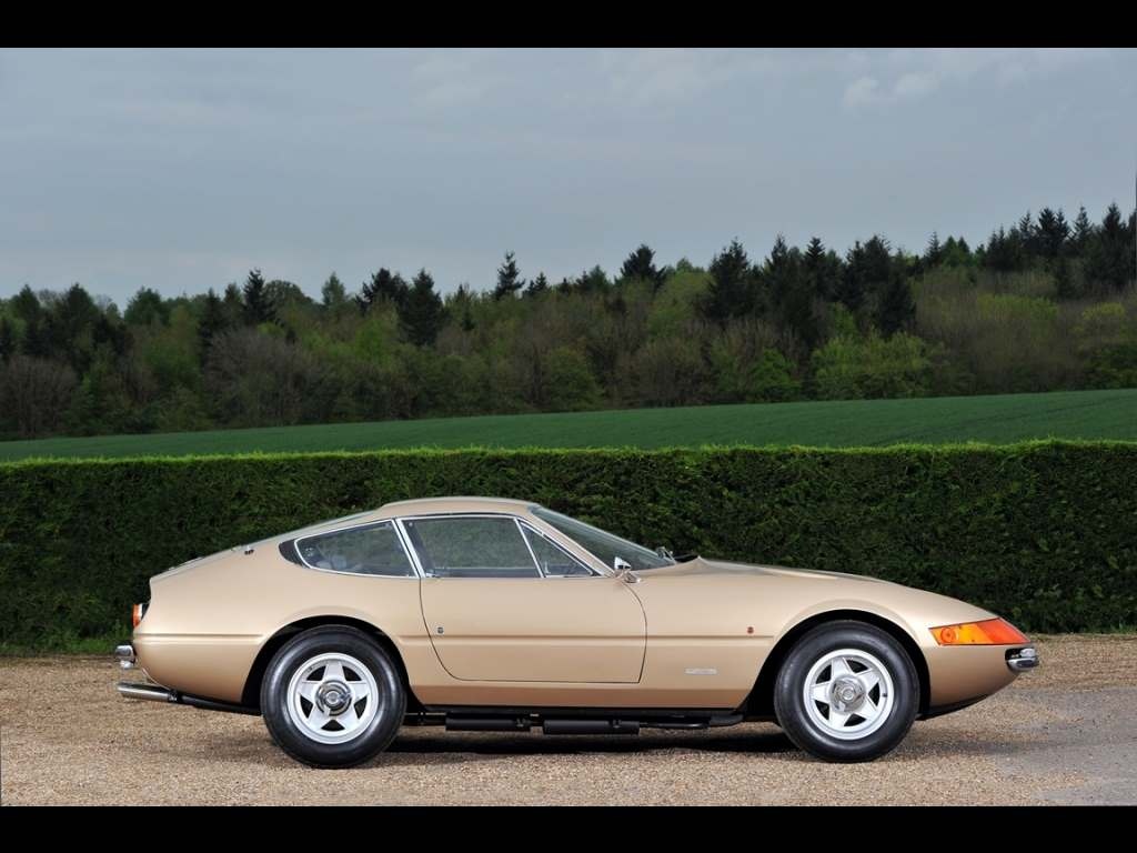 The Daytona's motor is essentially an enlarged Tipo 226 60° V12 from the previous 275 GTB/4 and is designated Tipo 251. They have a displacement of 4.4-litres producing 352bhp at 7500rpm. At the time the Daytona became the world's fastest production car with a top speed of 175mph and 0-60 in 5.3 seconds - enough to eclipse every other manufacturer, even Lamborghini. Pininfarina designed the Daytona's bodywork exuding power from every angle. As a result the Daytona remains one of the most jaw-dropping GT's to this day.