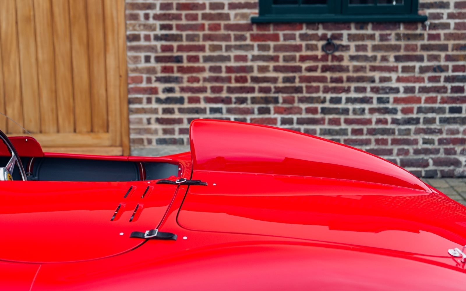In 2012 its lengthy period of hibernation came to an end, when it was finally extracted from its repose and shipped across the Atlantic to DK Engineering in the UK to be resuscitated. Bruce had known David Cottingham for many years, and felt that both he (David) and his company’s in depth knowledge and previous experience with Ferrari four-cylinder models would be the best choice to breathe new life into the old girl. The result was a three year ground up restoration, going to great lengths to retain the original aluminium body shell, and to source and incorporate the correct specification missing period components, which as previously noted included the engine from 500 TR, chassis # 0650 MDTR.