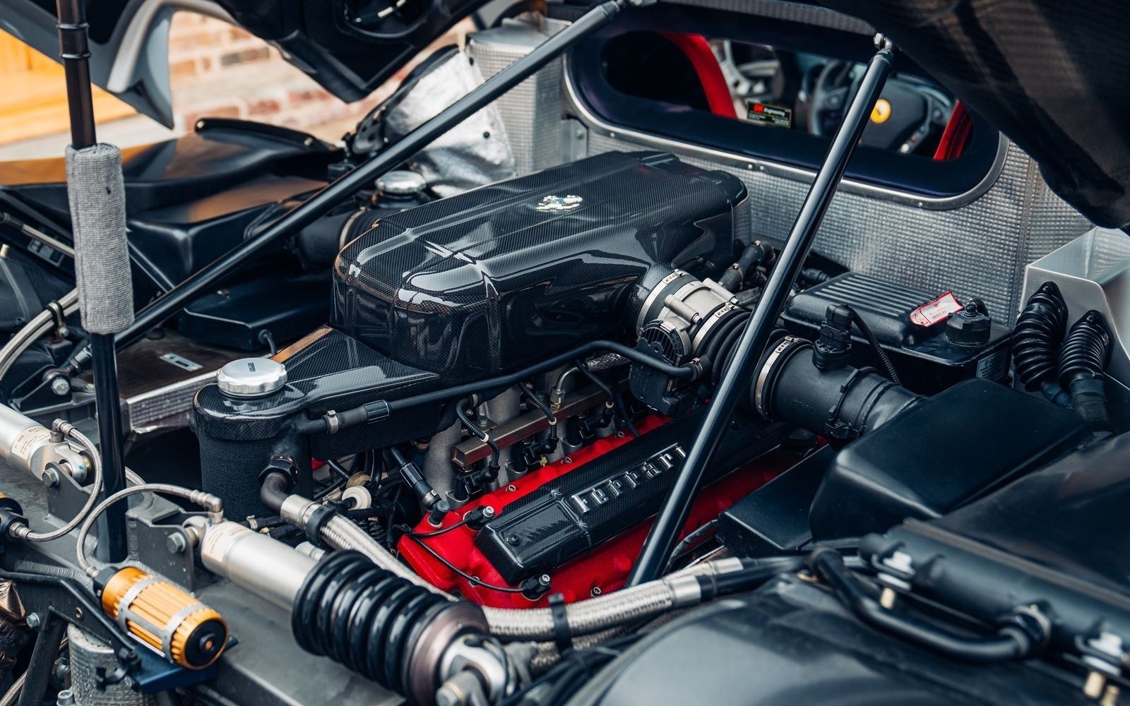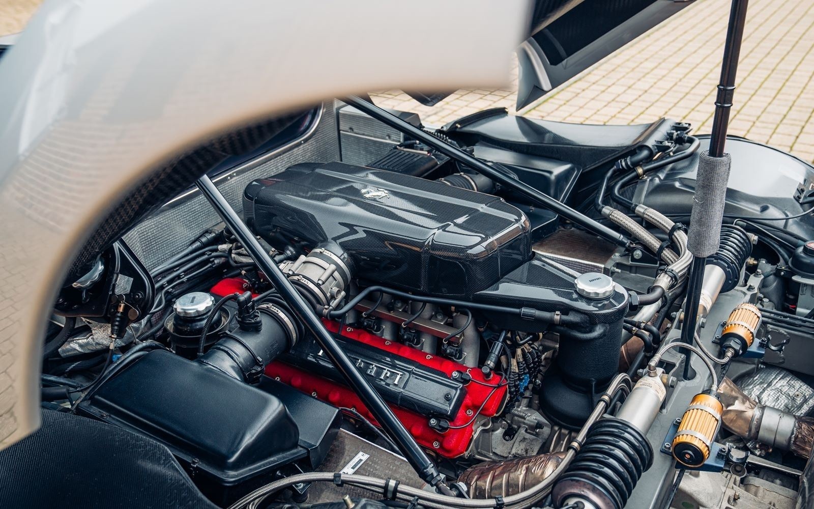A normally aspirated V-12 with an all-alloy block formed the heart of the Enzo's 6.0-litre motor and was the first of a new generation of Ferrari engines. With 5,998 cc it returned to a four-valve cylinder head and featured a variable-length induction system that extended the length of the induction pipes from 340 to 43 0mm via hydraulic actuators. Also new was variable inlet and exhaust valve timing that helped produce 650bhp at 7,800 rpm, more than any previous Ferrari production car.