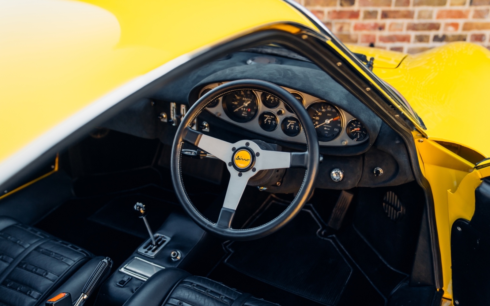 By 1990 the Dino was in need of a restoration and then owner Mr Rombouts-Howitt would embark on a ten-year restoration project with Grand Tourismo Services of Egham. Metalwork was carried out by Dino-specialists Prestige Metal Works, documented by a wealth of invoices on file, as well as for parts purchased from Maranello Concessionaires between 1990 and 2000. The restorative works further included an engine rebuild. The Dino was refinished in Giallo over Nero and fitted with ‘chairs’ at this time.