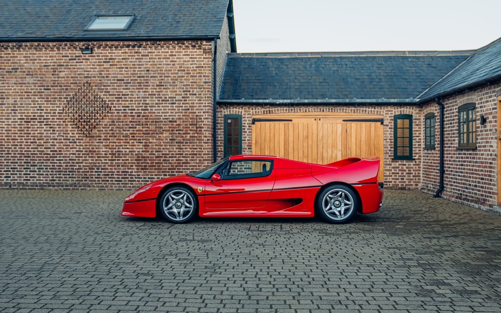 Following in the footsteps of the fabled F40, Ferrari’s F50 was unveiled at the Geneva Motor Show in 1995. Hugely influenced by Formula 1 design and technology at the time, at the F50 heart was a naturally aspirated V-12 engine derived from Ferrari’s 642 F1 car, campaigned during the 1991 Formula 1 World Championship. With 512 bhp on tap, its Formula 1 origins and 8,000 rpm redline made the engine truly sonorous when driven as its manufacturers intended. Top speed was claimed as being 202 mph and from a standstill, the F50 would sprint to 60 mph from a standstill in 3.8 seconds.