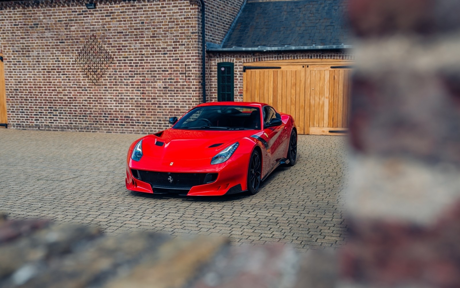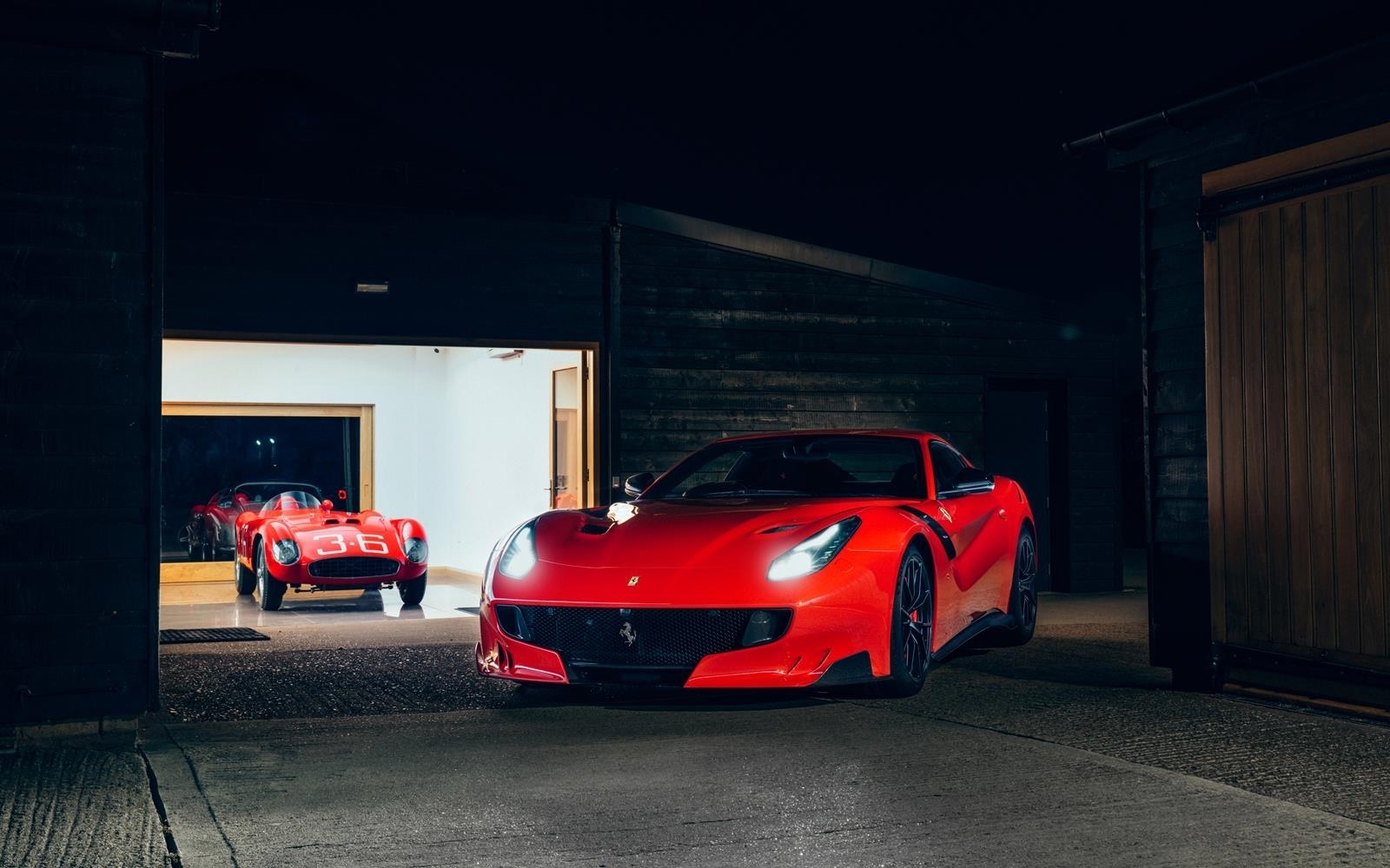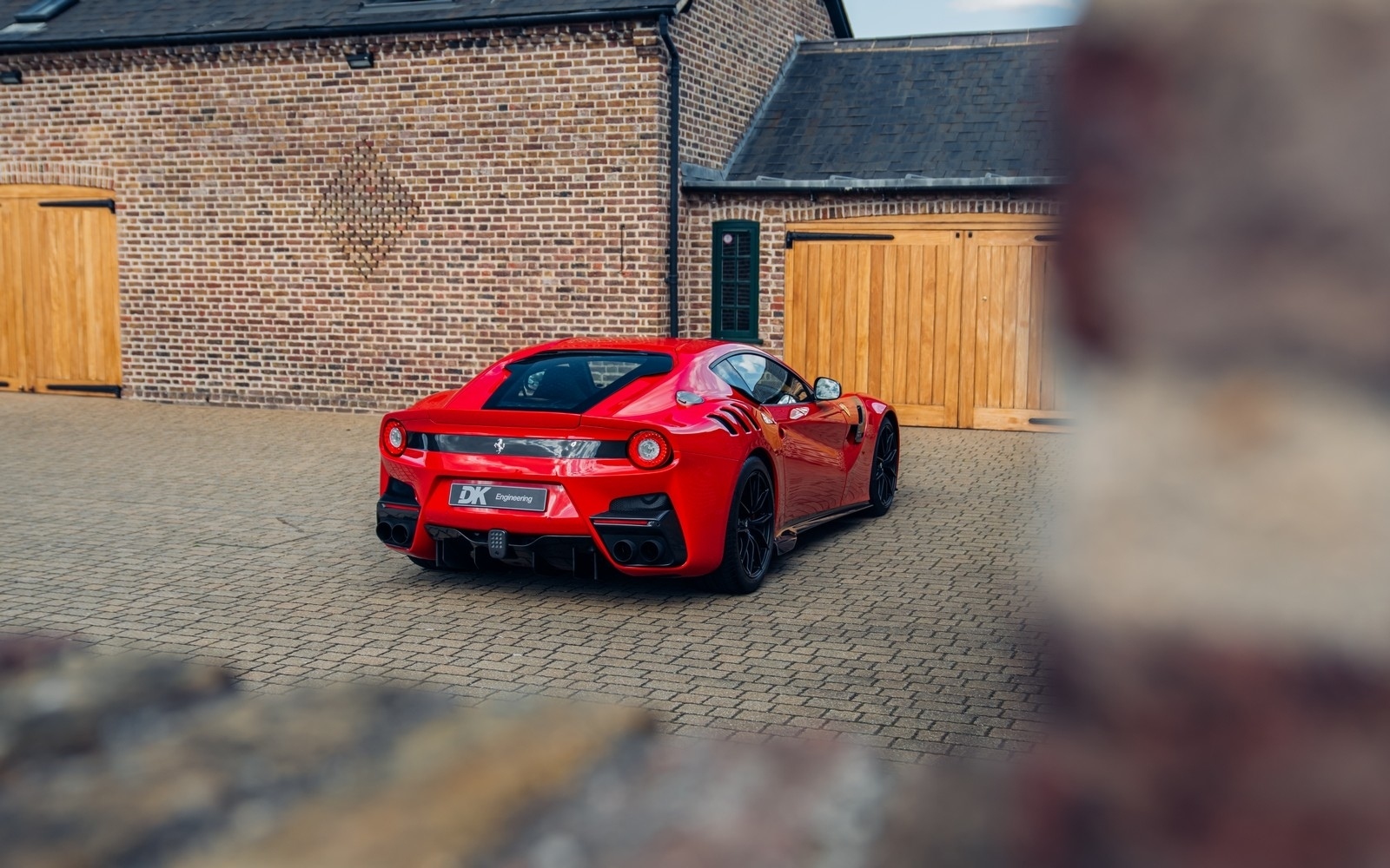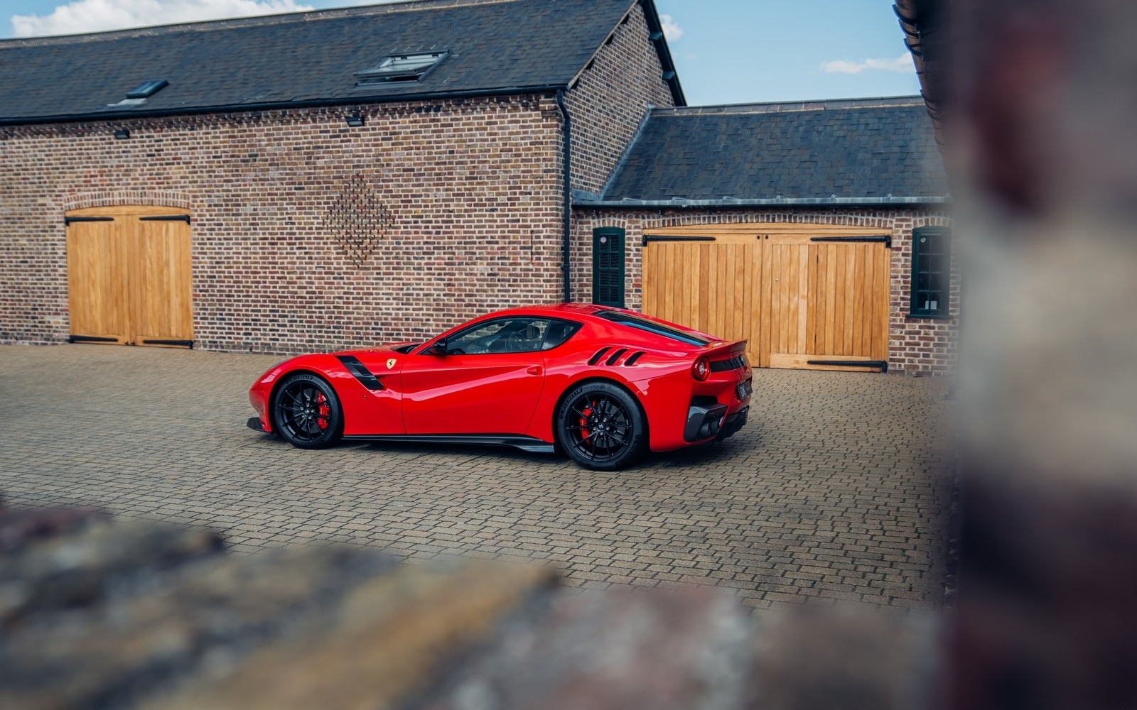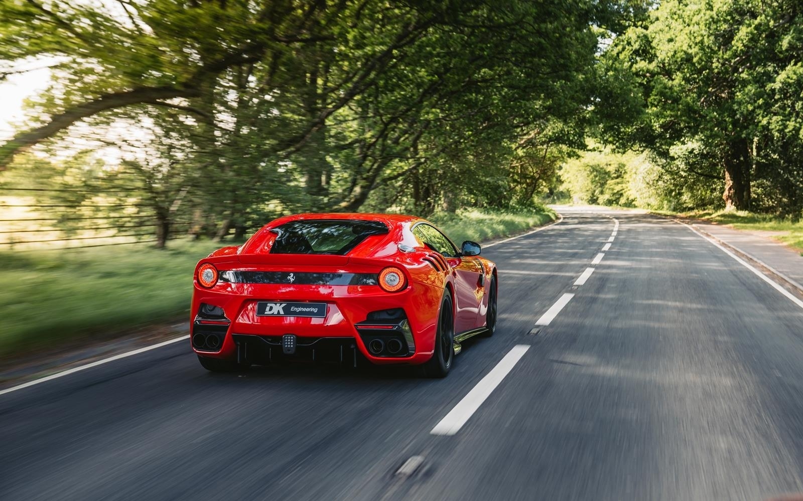 The F12 TdF is 110kg lighter than the F12, thanks to the prominent use of Alcantara and Carbon Fibre in the interior instead of Leather and Aluminium, and the extensive use of Carbon Fibre on the outside. Fitted for the first time on a Ferrari road car the TDF creates a ‘virtual short wheelbase’ system through the use of active rear-wheel steering; actuators on the toe link add up to a degree of angle greatly increasing stability. Visually the F12 TdF draws many cues from great Ferrari GT cars.