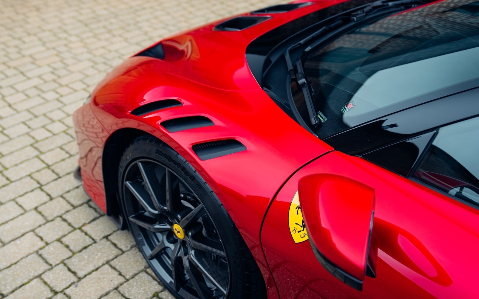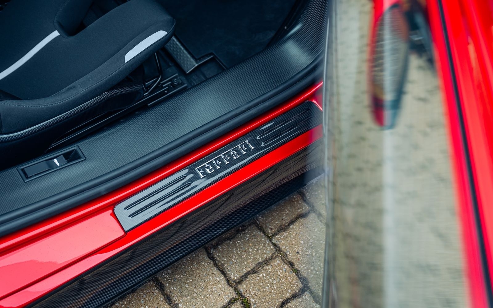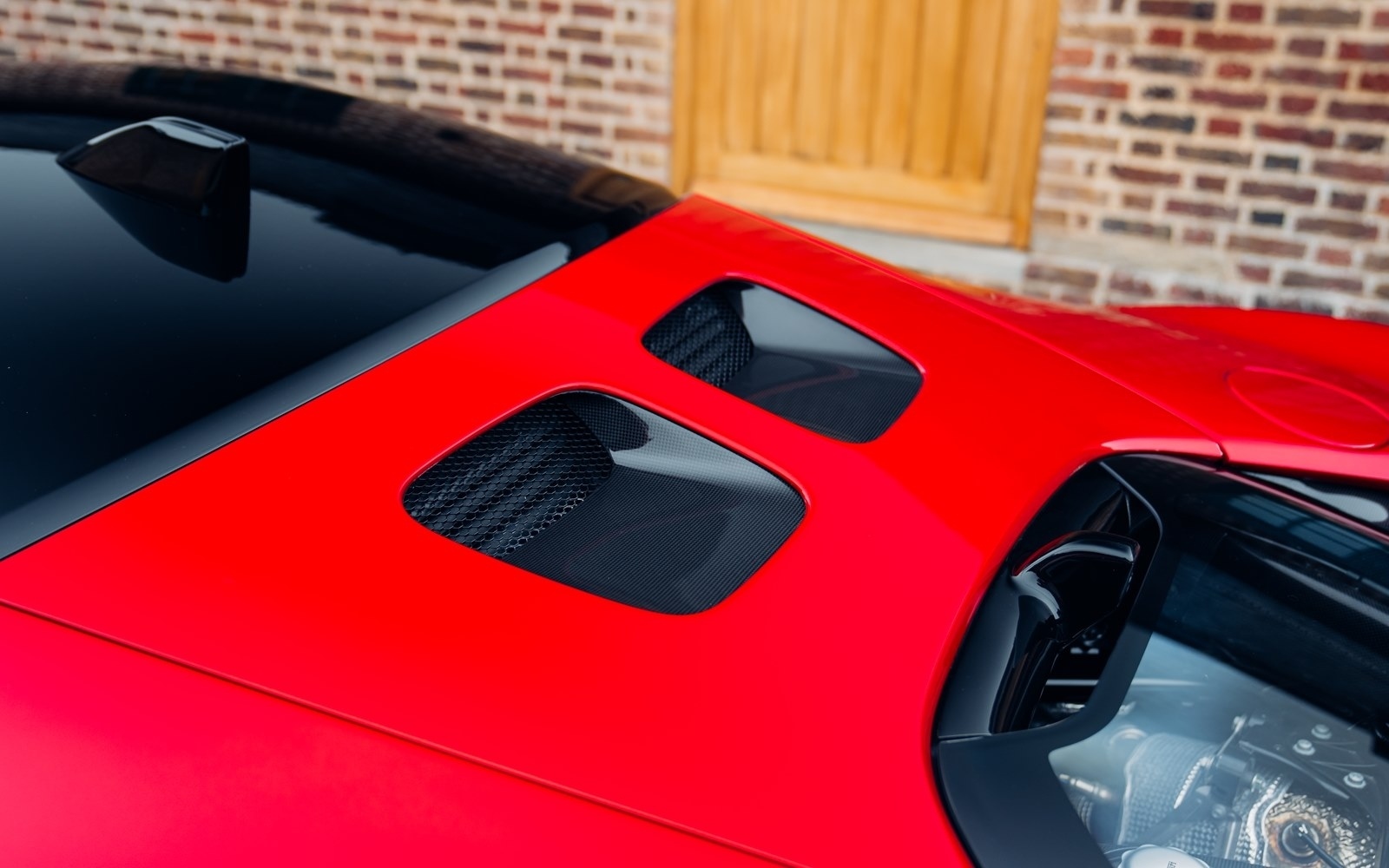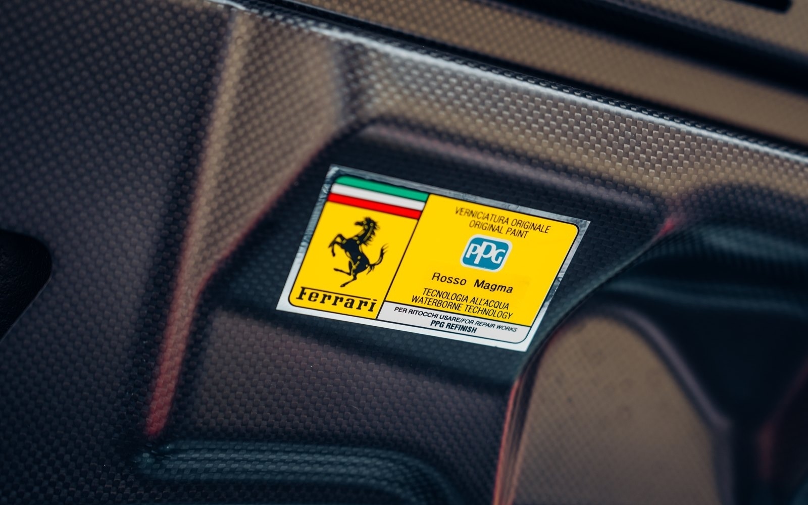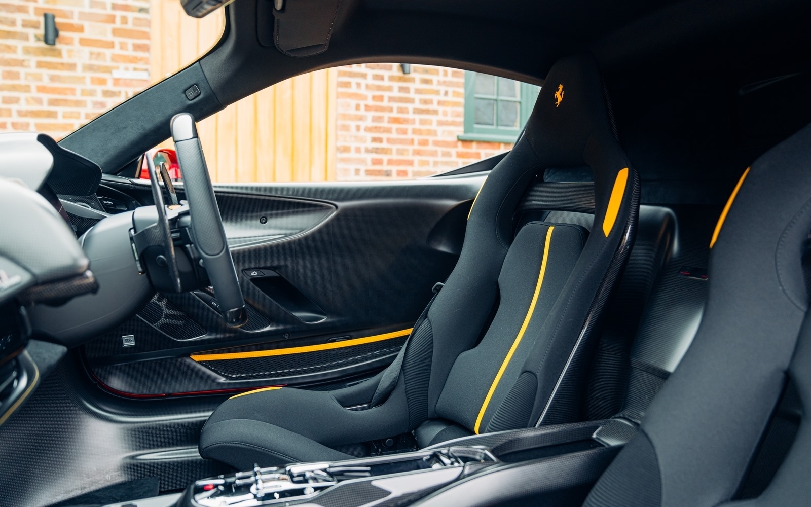 This example was supplied new in April 2025 and optioned in Rosso Magma, a four-layer colour launched on the 488 Pista. The exterior sees the optional upgraded carbon fibre wheels.
