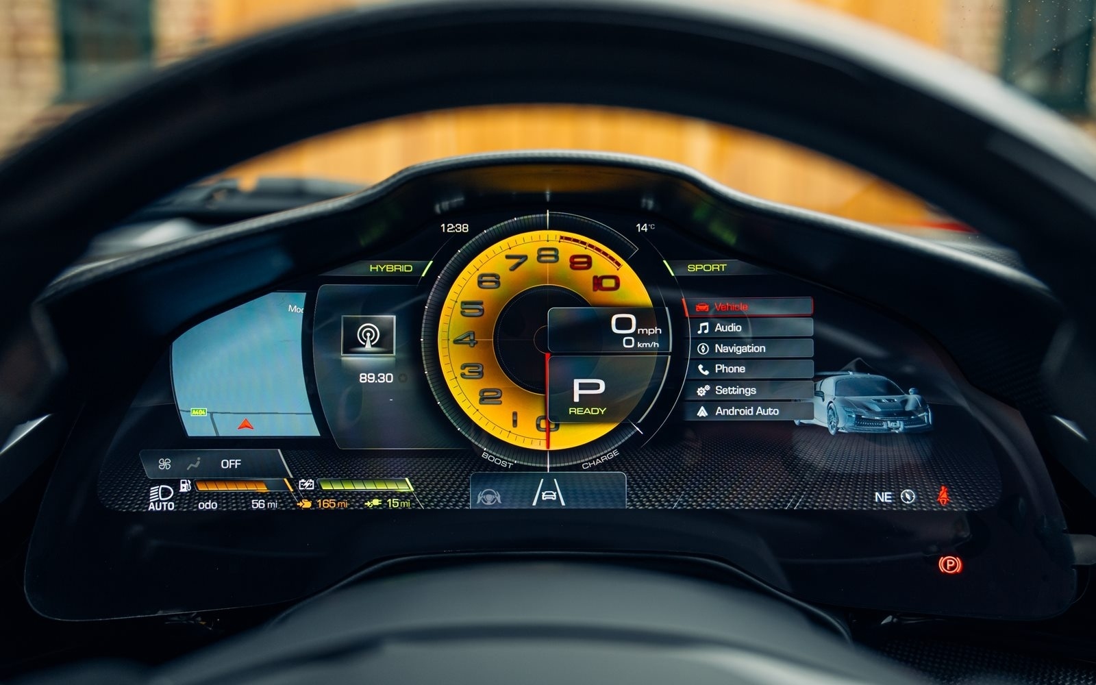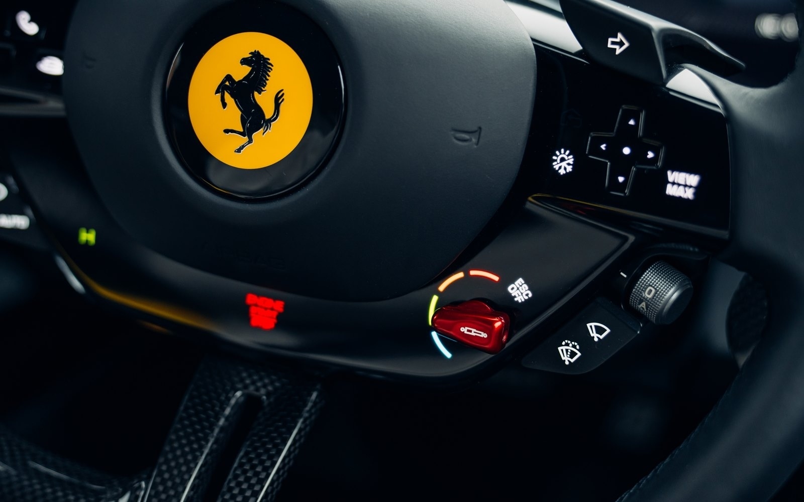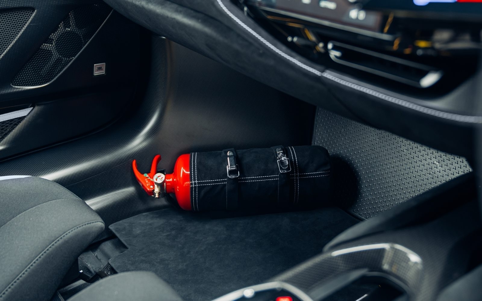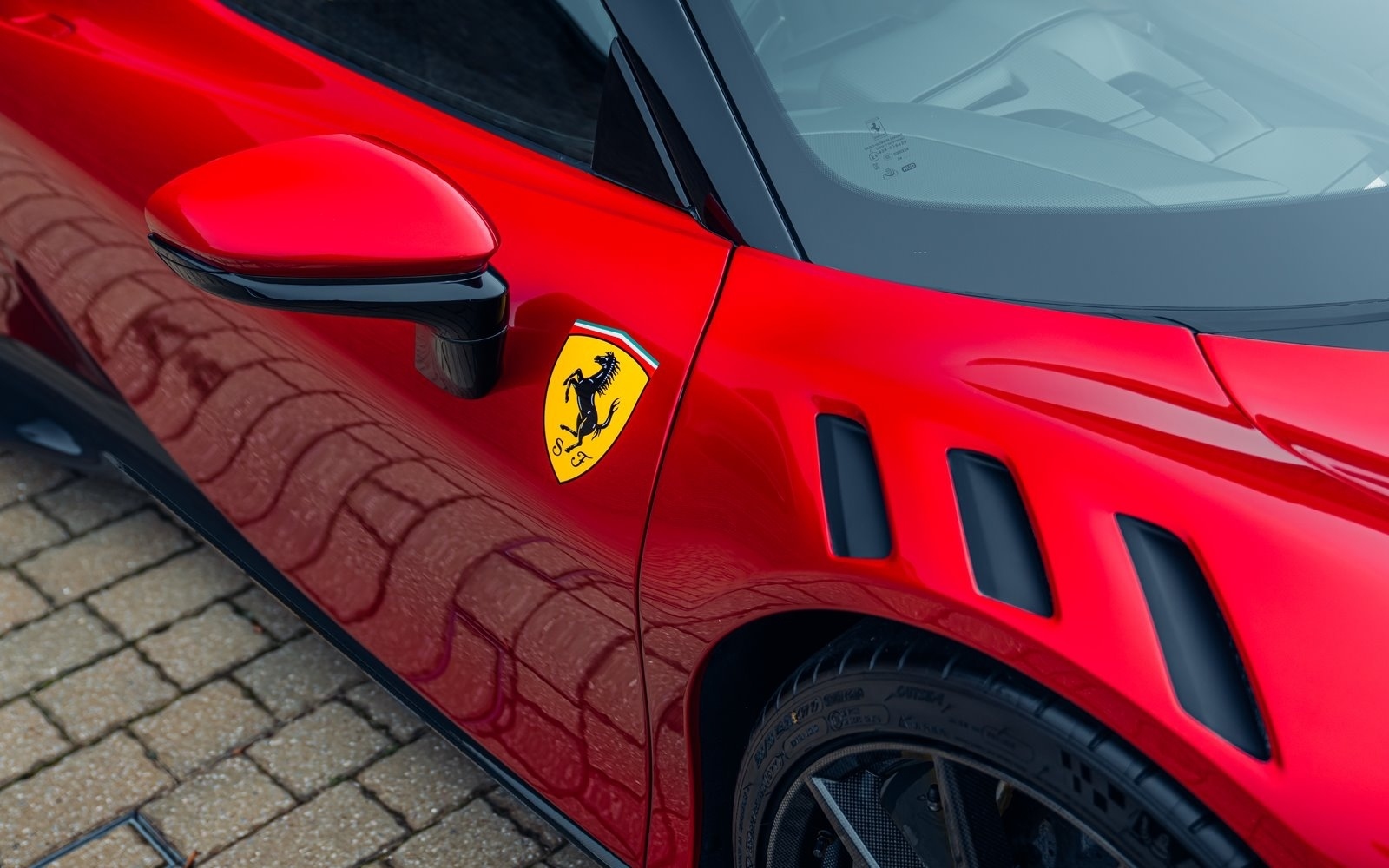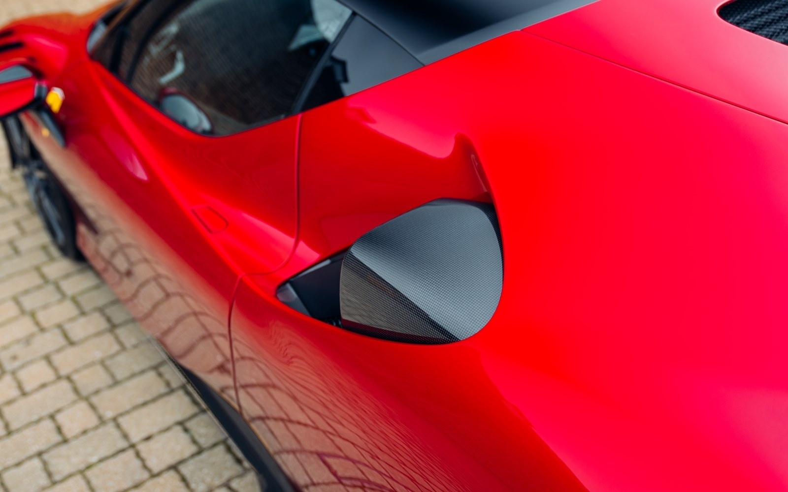 This example was supplied new in April 2025 and optioned in Rosso Magma, a four-layer colour launched on the 488 Pista. The exterior sees the optional upgraded carbon fibre wheels.