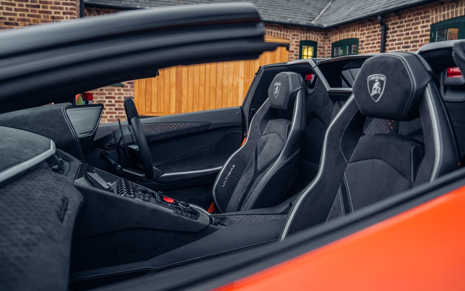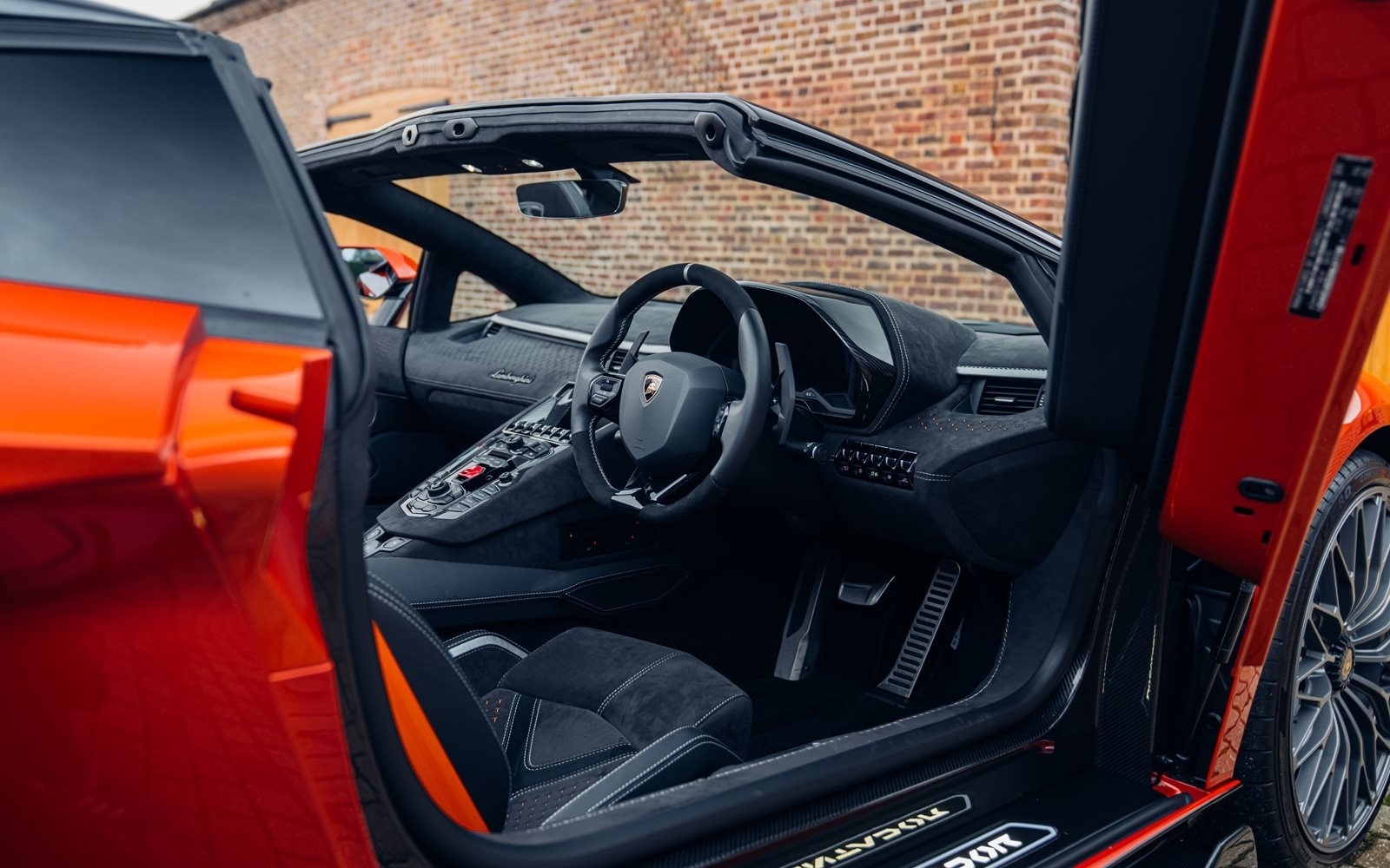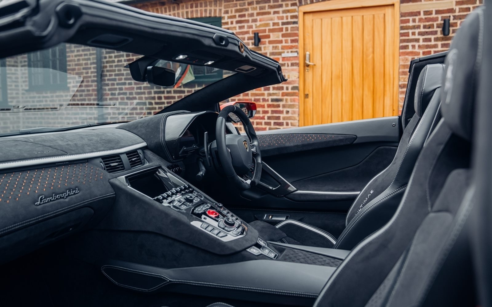 Ordered new through Lamborghini Chelmsford in April 2022, this Ultimae Roadster was optioned in Ad Personam Arancio Bruciata with upgraded forged Diantus wheels in titanium. The exterior is further optioned with a livery in Arancio Leonis, black brake calipers and removable hard top roof panels in gloss black.