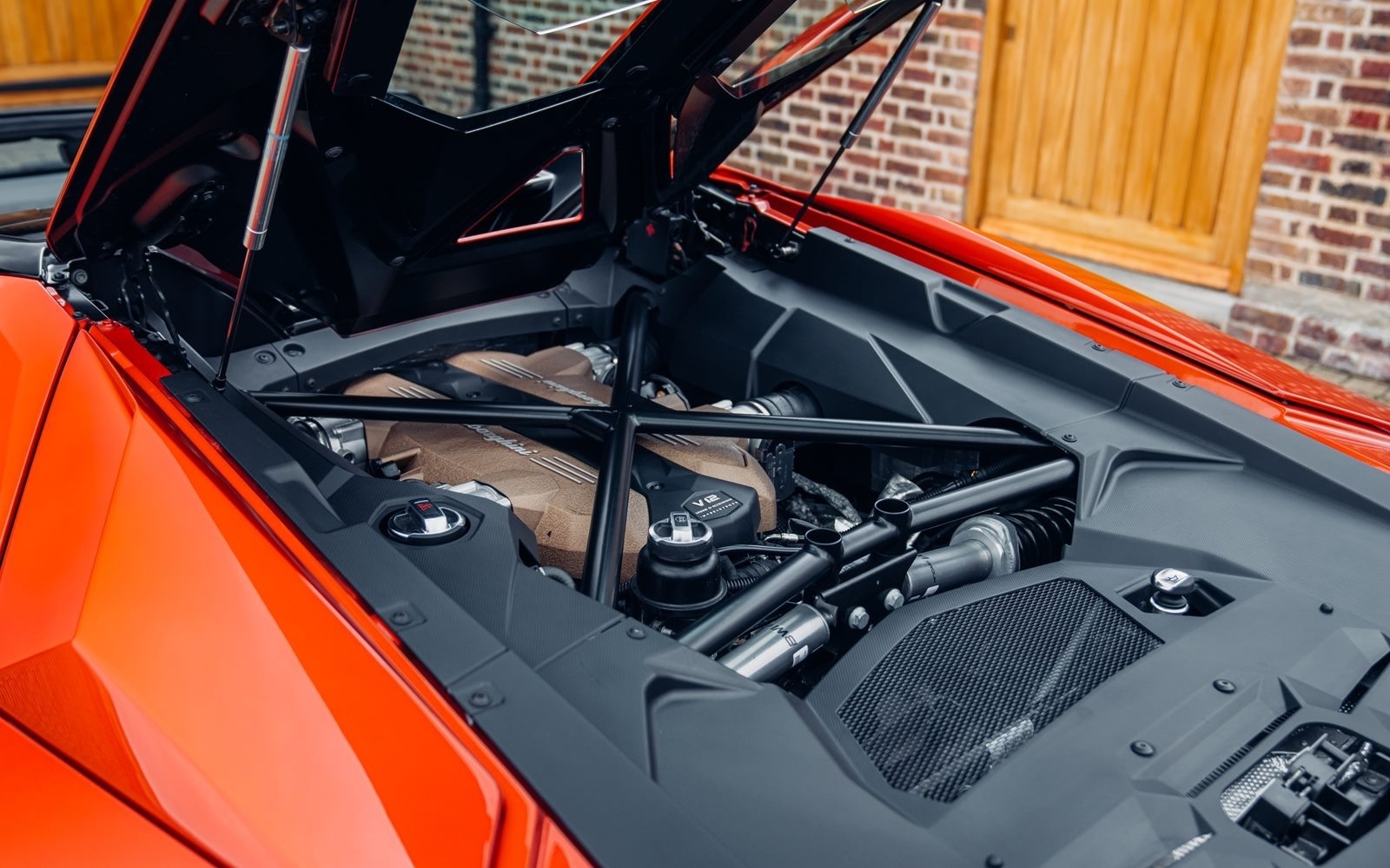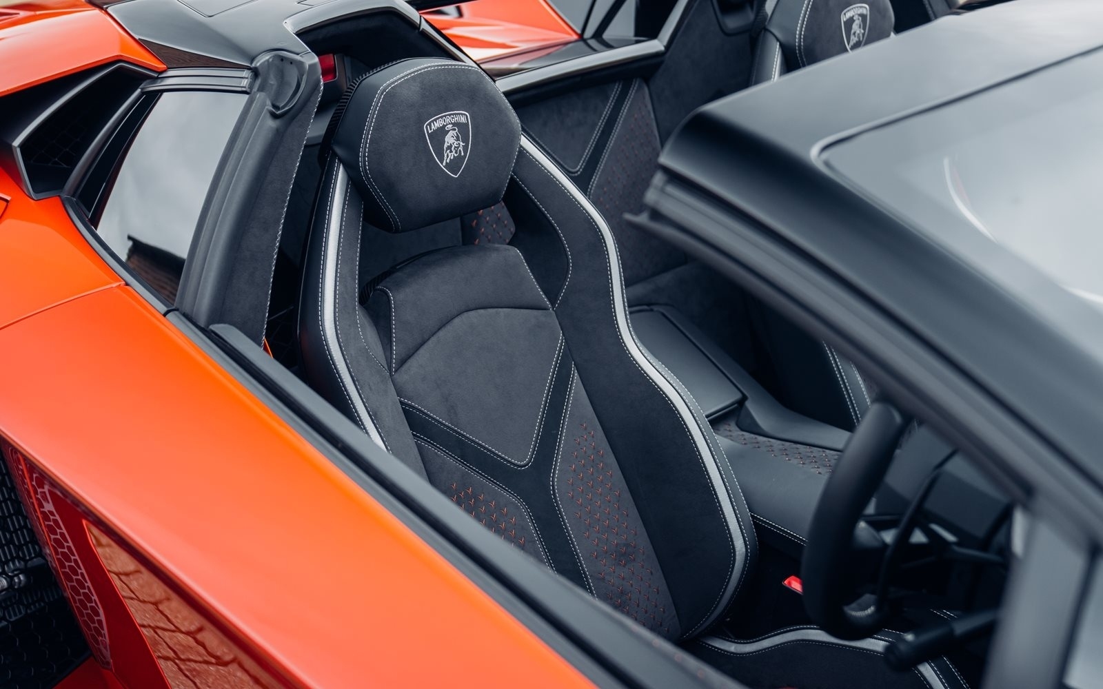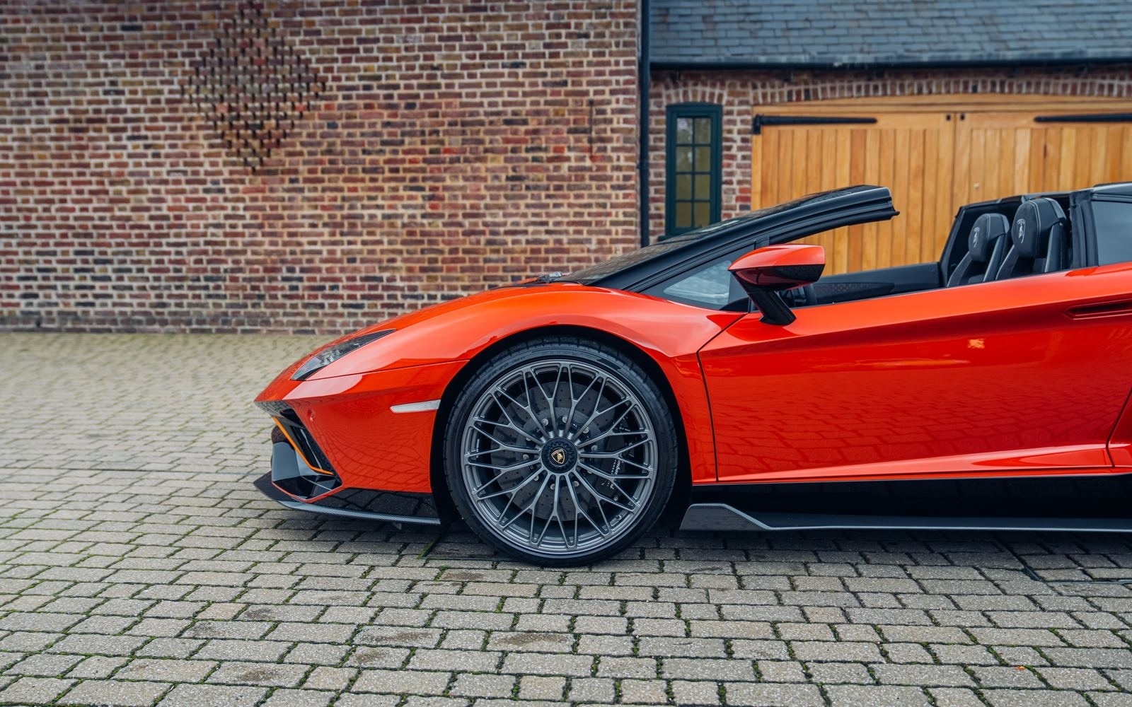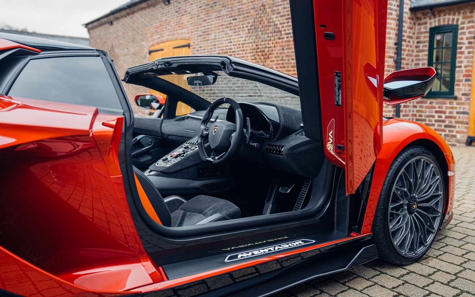 Ordered new through Lamborghini Chelmsford in April 2022, this Ultimae Roadster was optioned in Ad Personam Arancio Bruciata with upgraded forged Diantus wheels in titanium. The exterior is further optioned with a livery in Arancio Leonis, black brake calipers and removable hard top roof panels in gloss black.