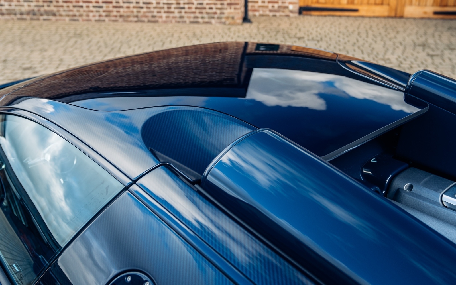 Purchased in 2021 by a prominent collector, Topaz Detailing were tasking with applying Topaz Skin, a peelable and removable paint over the original white paint in Blu Julie to match the visual tinted carbon fibre. At the same time, the French Tricolore was added under the wing. An eminently usable proposition, this Vitesse is today this example is offered for sale at our showrooms outside London with just 14,500 km from new.