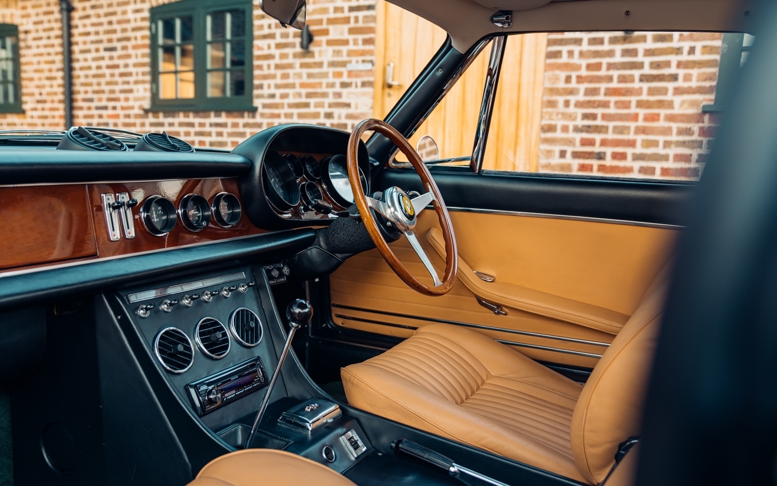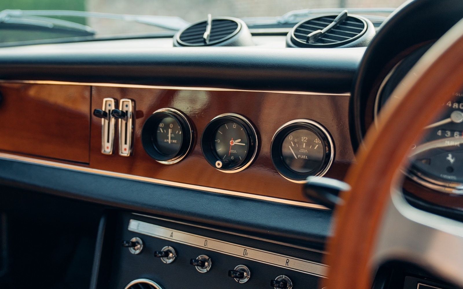 Originally ordering his GTC to be supplied in Blu Tourbillon over a scarlet hide; after ‘a complete change of heart’ the order was amended, and his allocation change to car already in build. In early July 1969, Ferrari invoiced Maranello Concessionaires for this 365 GTC, one of only 22 examples to be finished in right-hand drive. The car was finished in his revised choice of Oro Nashrullah with a Nero interior.