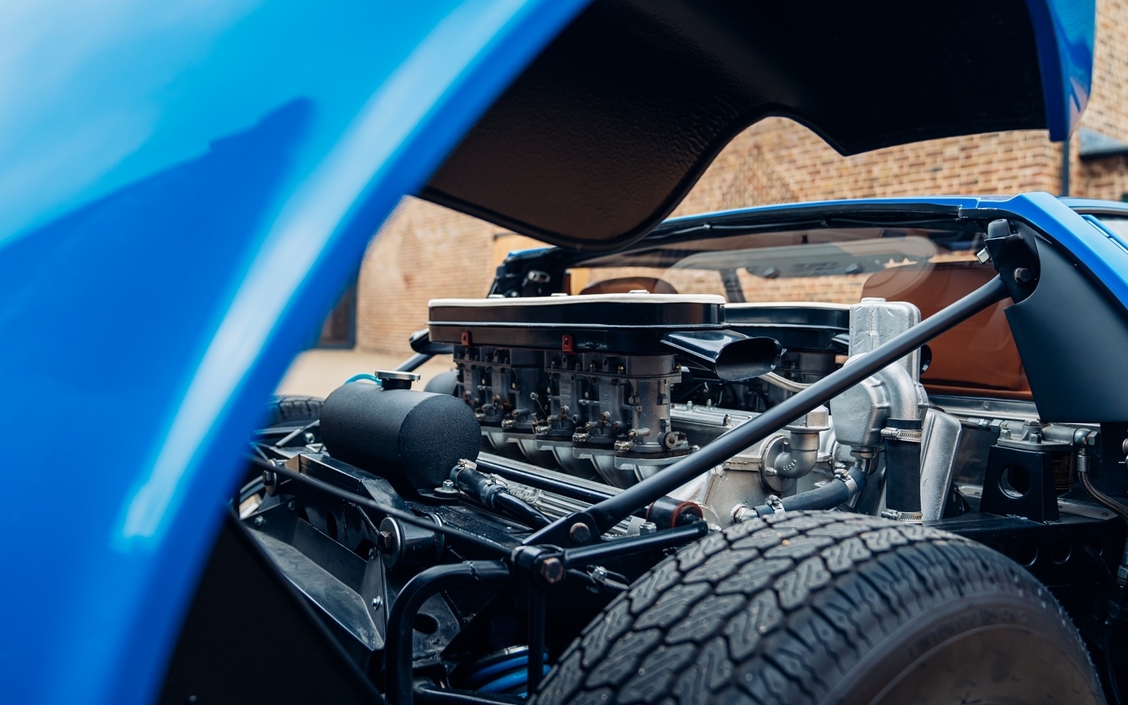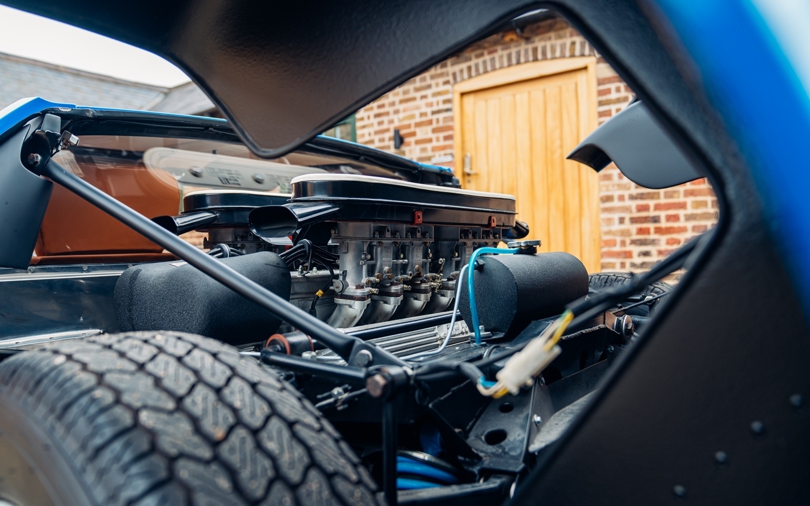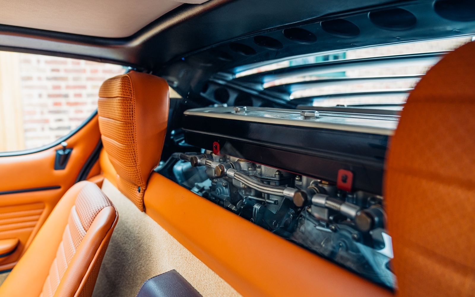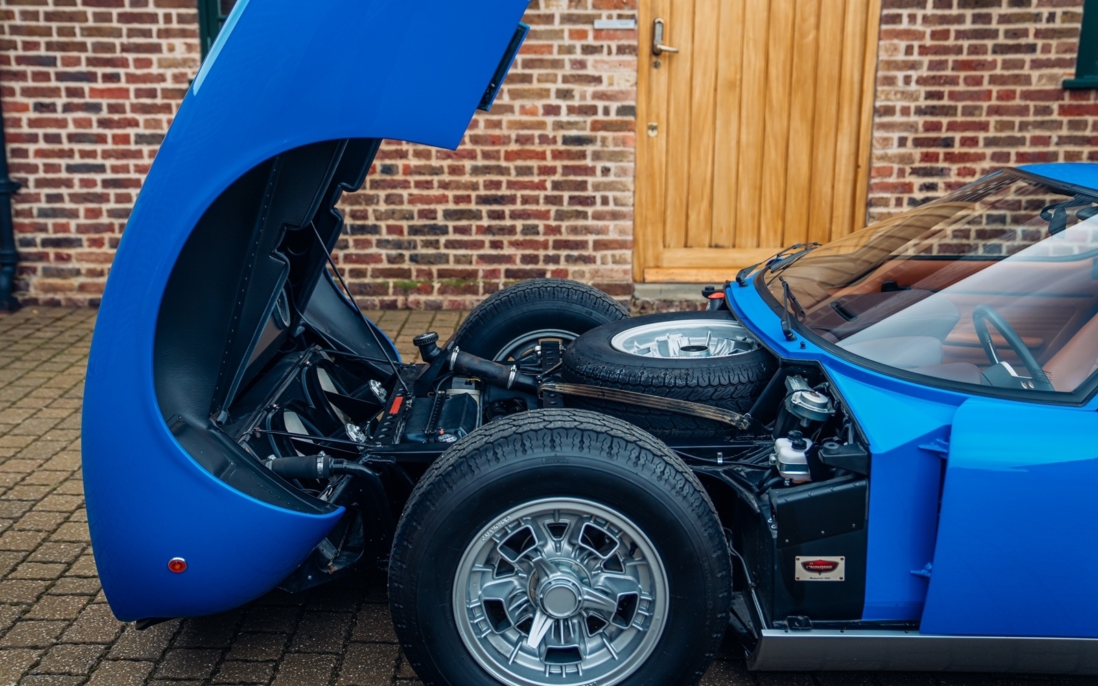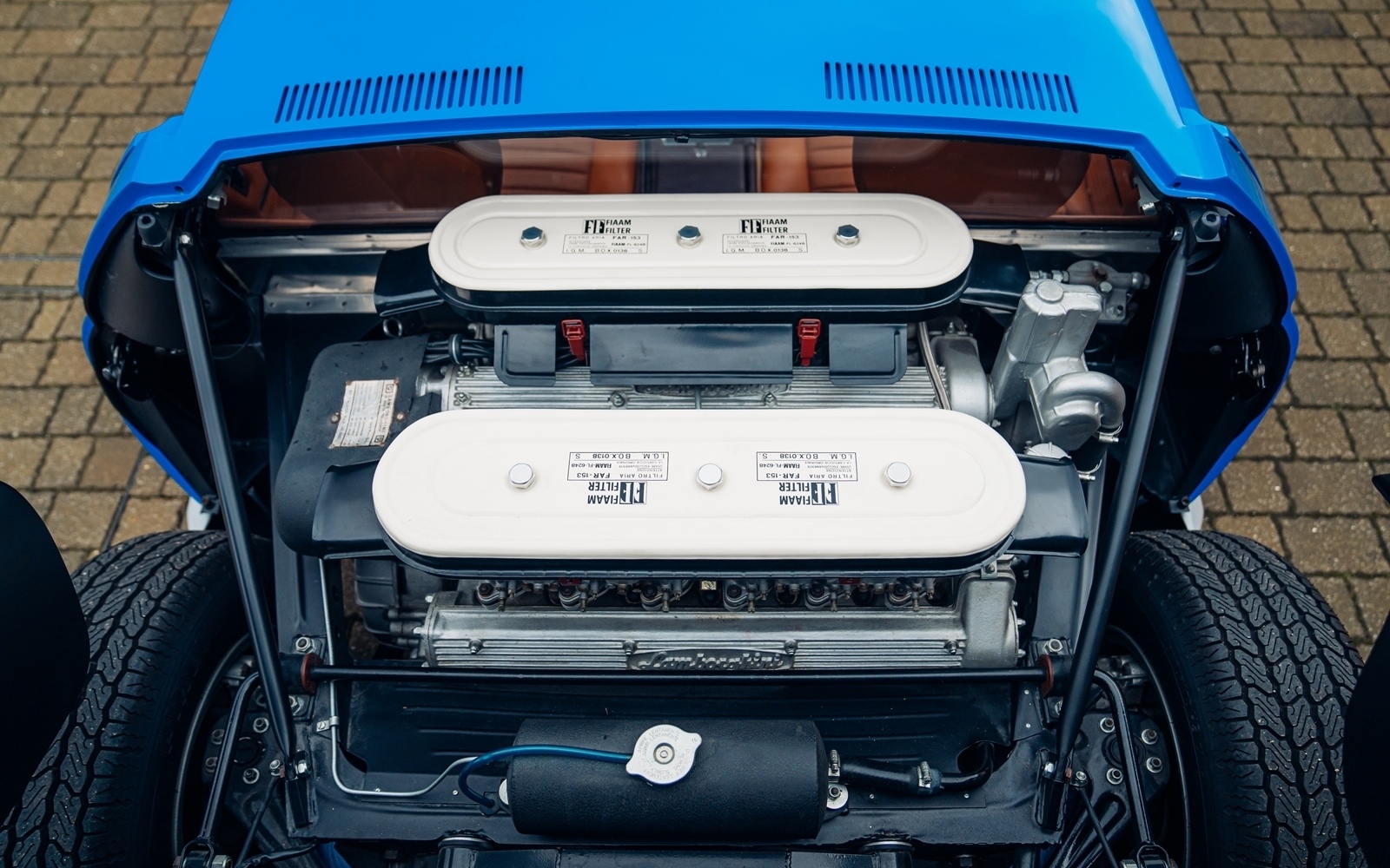 To that end, the car was entrusted to the respected Italian restoration specialist Scartapatti in 2018 for a full bare-metal, concours-level restoration. A comprehensive photographic record documents the entire process, from initial disassembly and stripping to bare metal, through the careful application of fresh Bleu Miura paint, a complete overhaul of the engine and running gear, installation of a new interior, and final assembly. The meticulous attention to detail is evident throughout, extending even to period-correct touches such as the proper Fiam decals on the airbox. Completed in 2021, the Miura now presents superbly in its original Bleu Miura and Skay Senape colour combination.