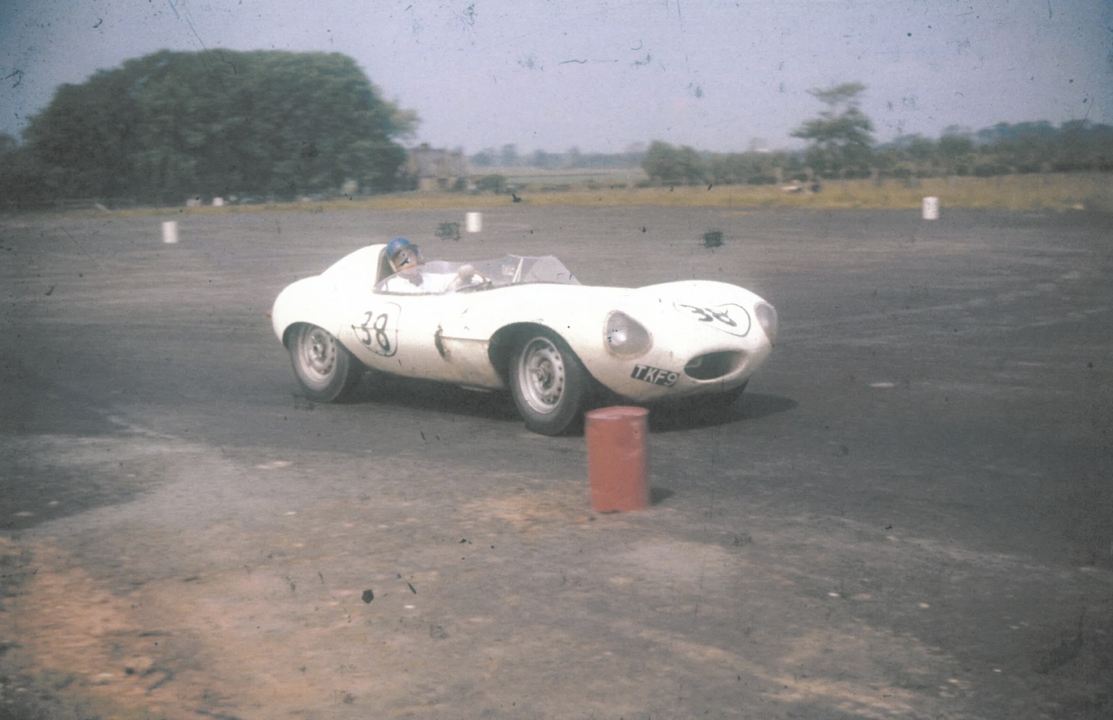 In May 1956, XKD 517 was acquired by the Murkett Brothers. The Murkett family spearheaded a reputable automotive engineering and servicing business that spanned multiple sites throughout Cambridgeshire. With expertise in maintenance and upkeep of predominantly British marques, including Jaguar, the brothers decided to campaign their D-type throughout Europe, employing the driving talents of Henry Taylor and Archie Scott-Brown. Early on during the brothers’ campaign, which saw “TKF 9” driven at Spa-Francochamps and the Nürburgring, the car was refinished in off-white, the colour scheme it would go on to sport throughout its most notable competition endeavours.