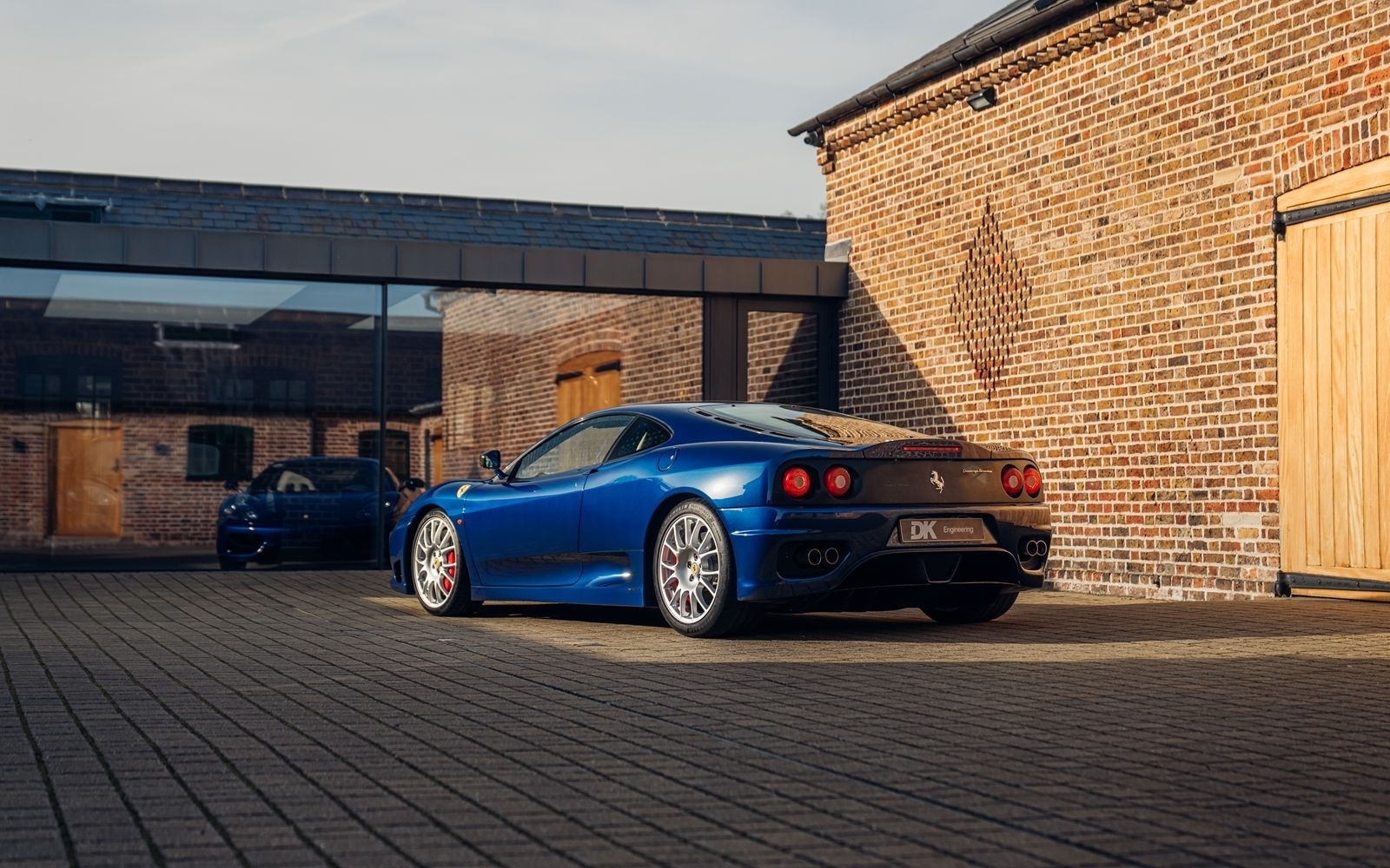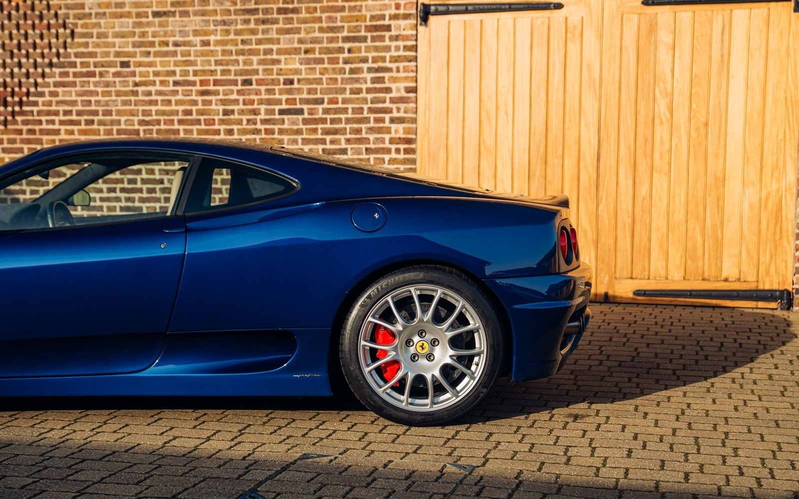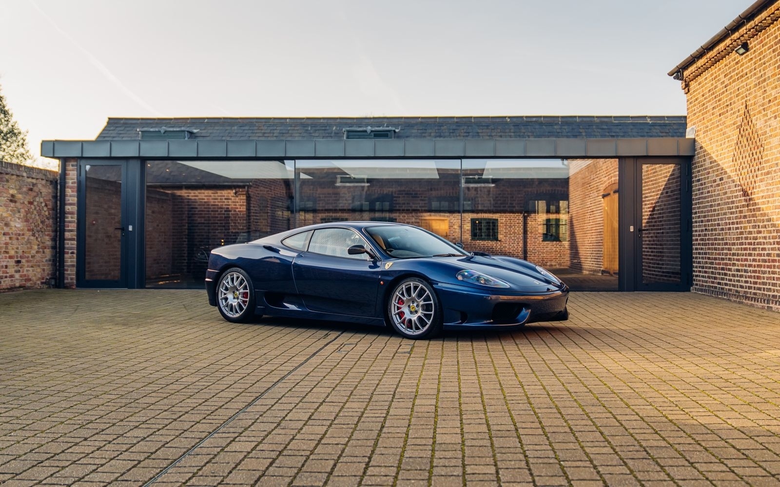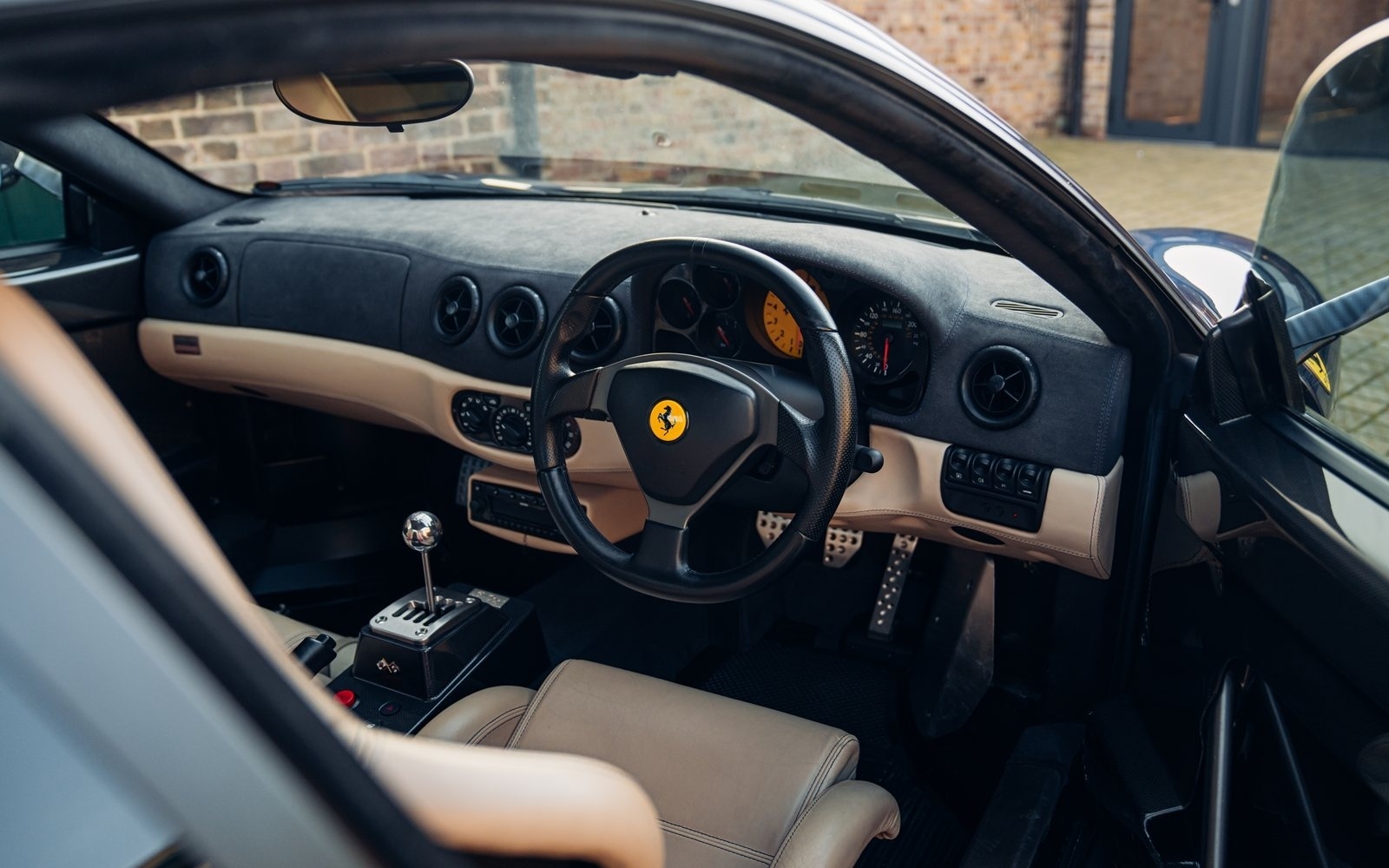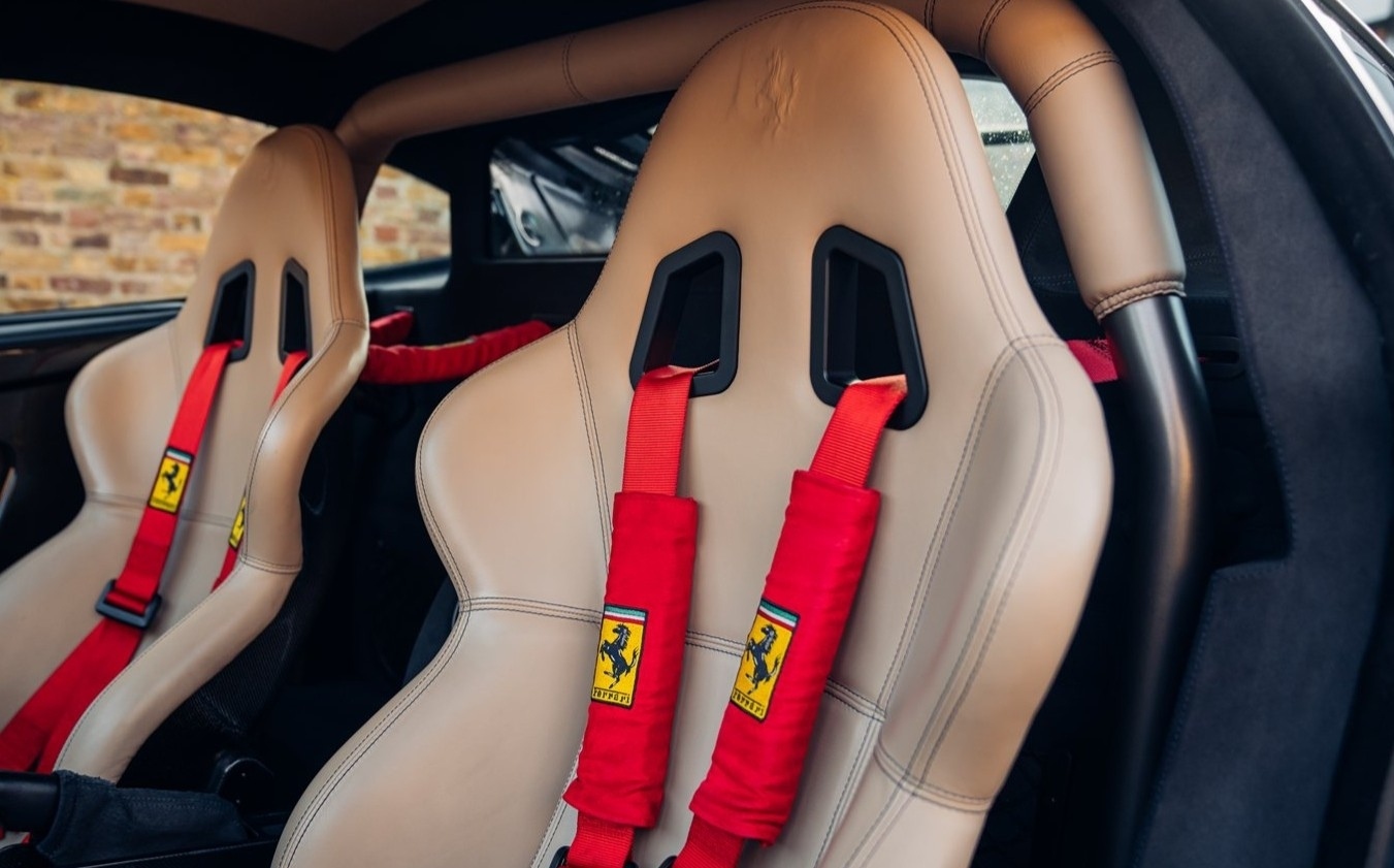 Of the 42 known examples to leave the factory in Blu Tour de France, fewer than 10 examples would be completed in right hand drive. This UK supplied Challenge Stradale is one of those examples and was optioned new with Sabbia leather, including a leather headliner. Other options included radio installation, handy fire extinguisher, brake calipers in Rosso, and Scuderia wing shields. Furthermore, this example was elegantly optioned without Ferrari's Tricolore racing stripe.