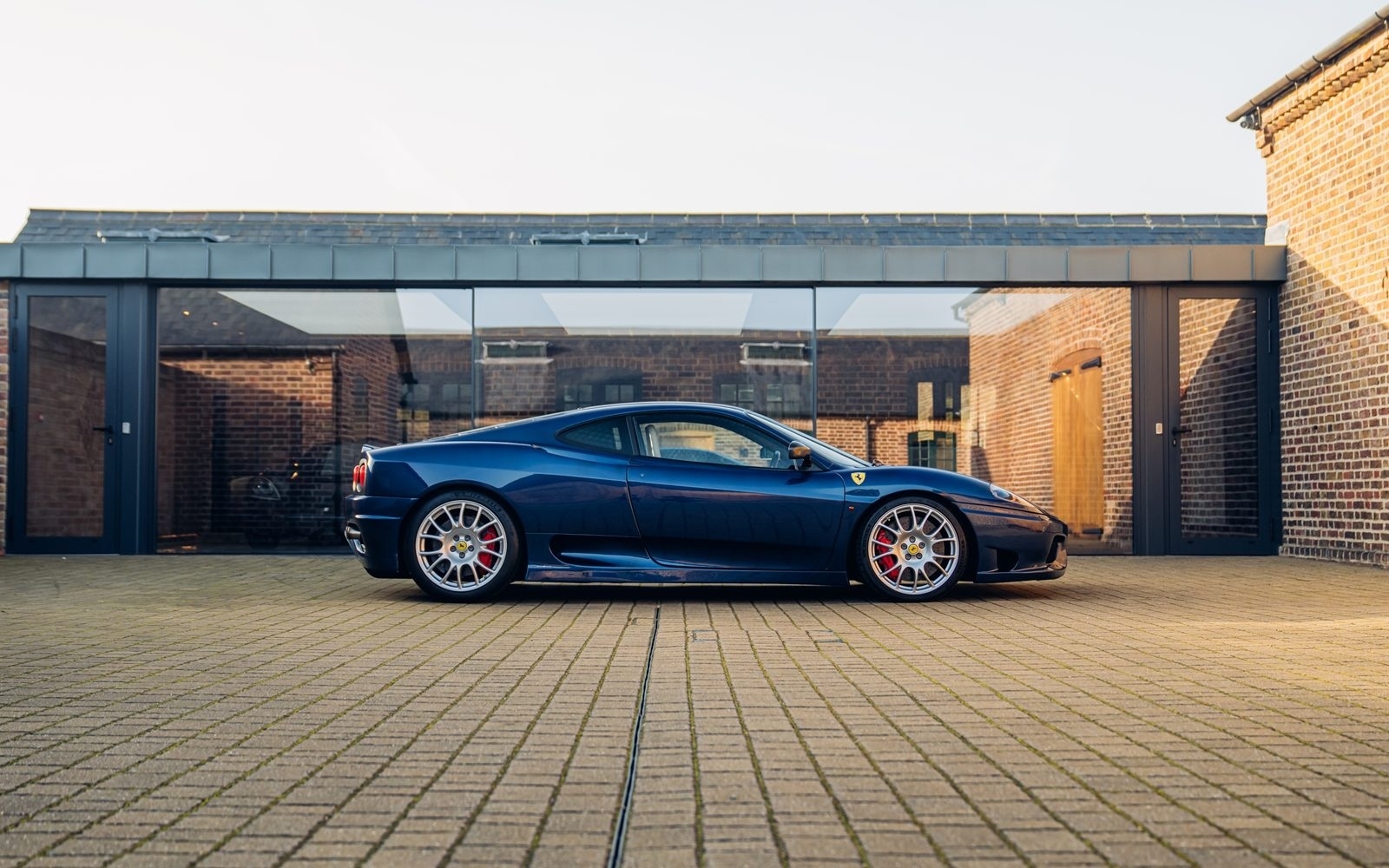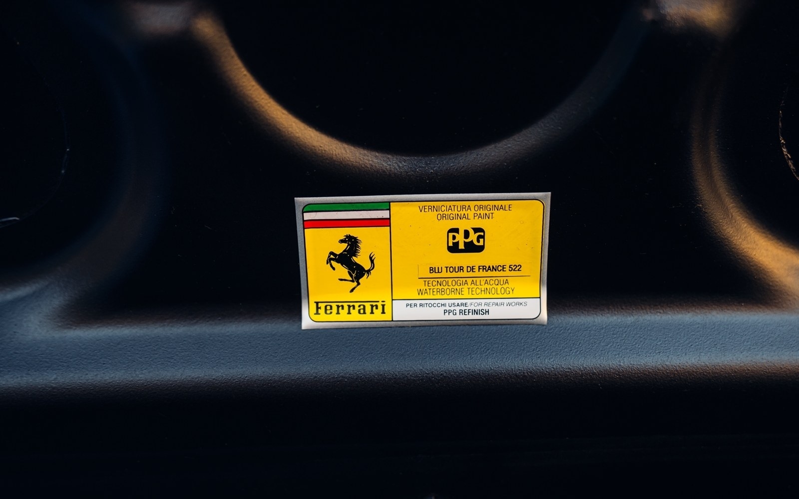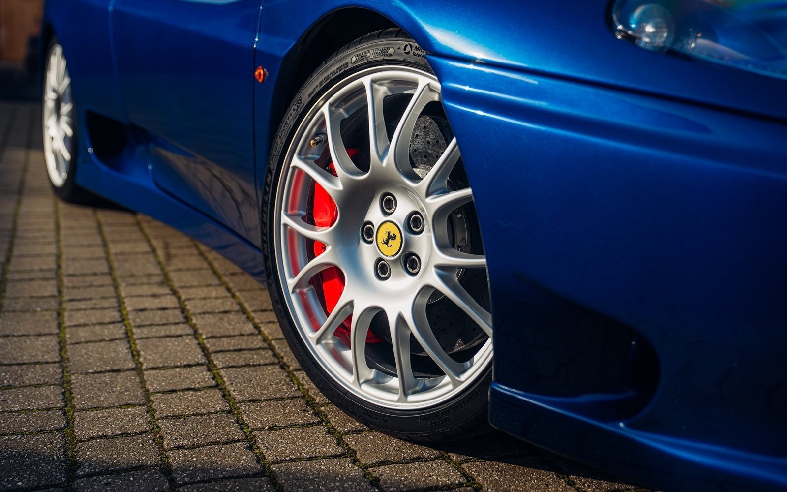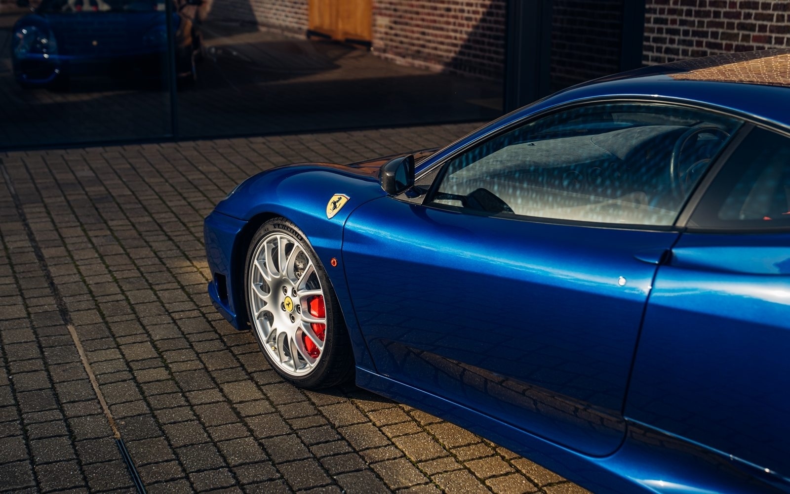 Of the 42 known examples to leave the factory in Blu Tour de France, fewer than 10 examples would be completed in right hand drive. This UK supplied Challenge Stradale is one of those examples and was optioned new with Sabbia leather, including a leather headliner. Other options included radio installation, handy fire extinguisher, brake calipers in Rosso, and Scuderia wing shields. Furthermore, this example was elegantly optioned without Ferrari's Tricolore racing stripe.