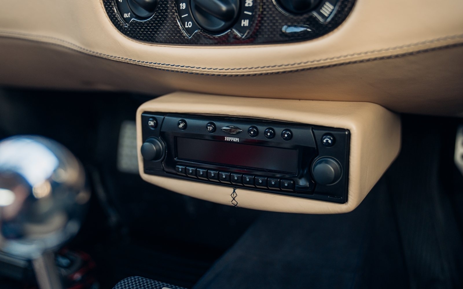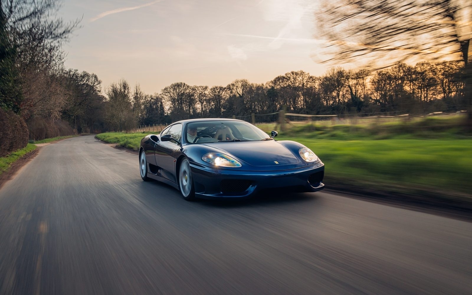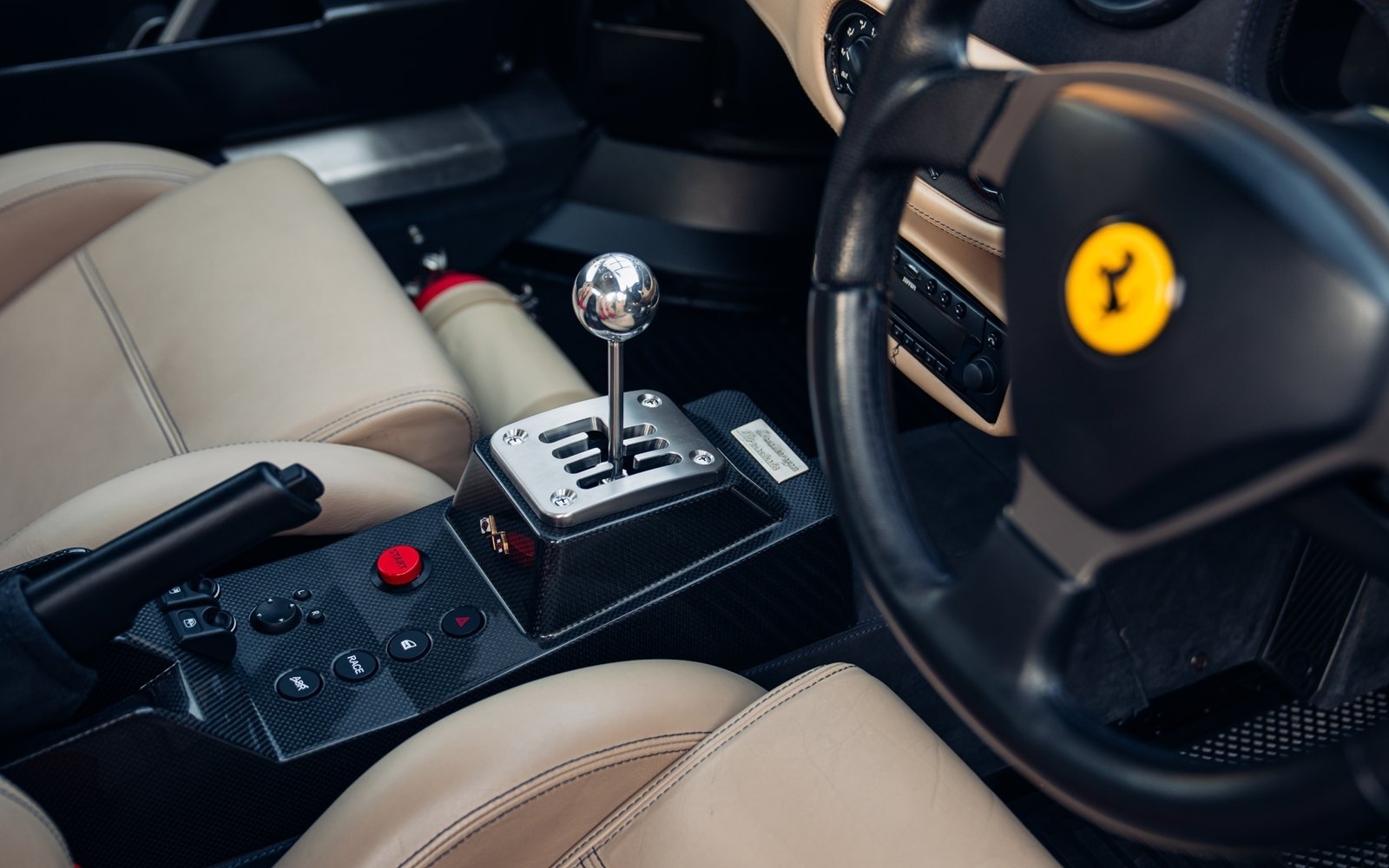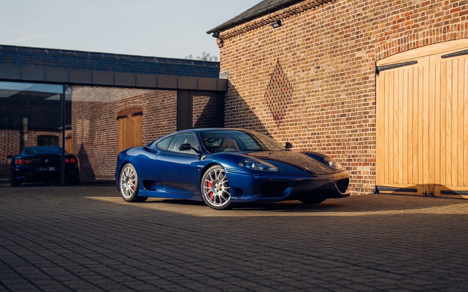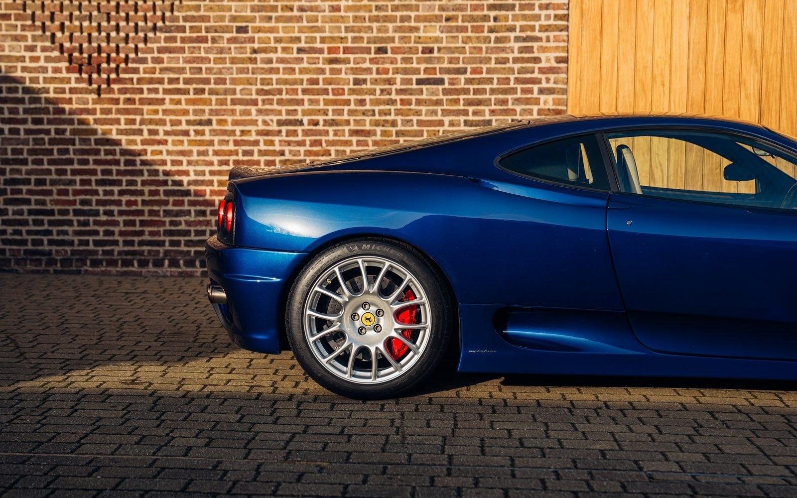 Of the 42 known examples to leave the factory in Blu Tour de France, fewer than 10 examples would be completed in right hand drive. This UK supplied Challenge Stradale is one of those examples and was optioned new with Sabbia leather, including a leather headliner. Other options included radio installation, handy fire extinguisher, brake calipers in Rosso, and Scuderia wing shields. Furthermore, this example was elegantly optioned without Ferrari's Tricolore racing stripe.