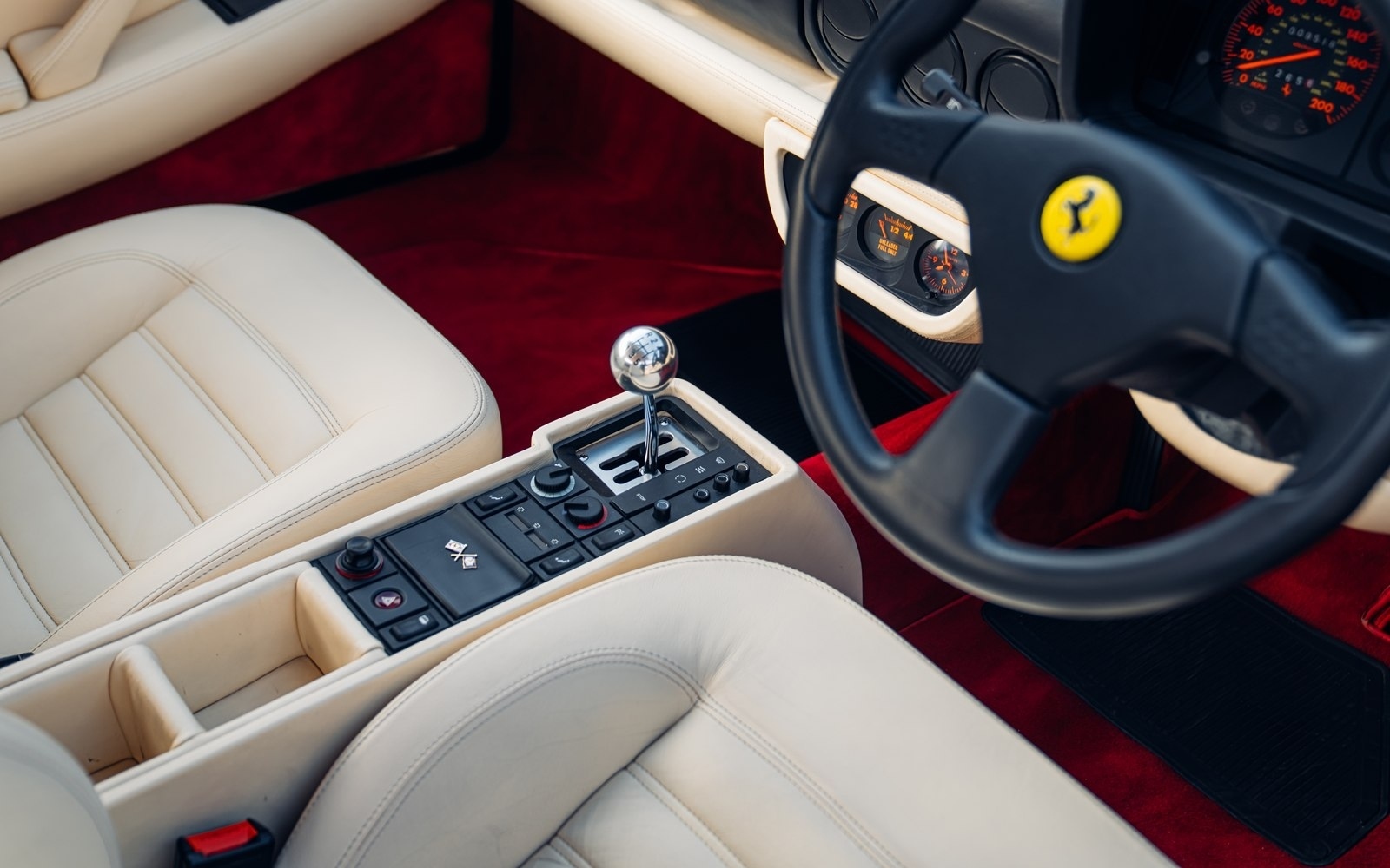 This example was imported into the UK by Maranello Concessionaires and supplied to its first keeper by Reg Vardy Ferrari of County Durham in November of 1995. Optioned from new in Rosso Corsa over Crema, this example saw the fitment of the new style split-rim twists with contrasting Rosso carpets. Its first owner, who had been unable to get allocation closer to home, promptly registered the car at his address in London.