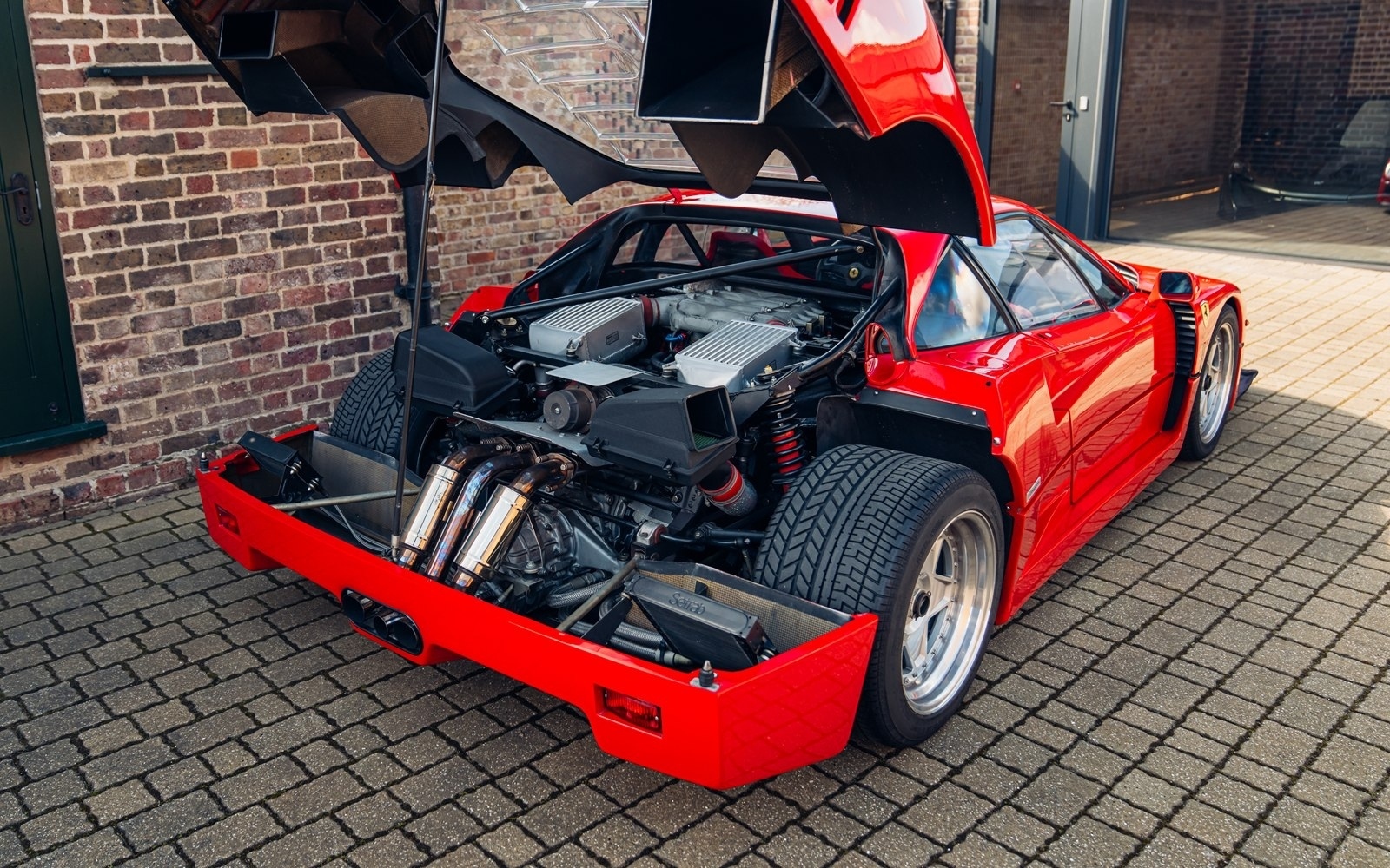 The design features a tubular steel chassis with bonded composite inserts, most notably around the sills and floor pan, The 2,936 cc motor produces approximately 500 bhp at 7,000 rpm with the help of two water-cooled IHI turbochargers running 1.1 bar of boost. At 1,202 kg, the F40 had, and still has, a phenomenal power-to-weight ratio. Shatteringly fast by any comparison (especially for 1988), the F40 can sprint from 0-60 mph in just 4.4 seconds and hit 201 mph flat out making it the first production car to surpass this mystical boundary.