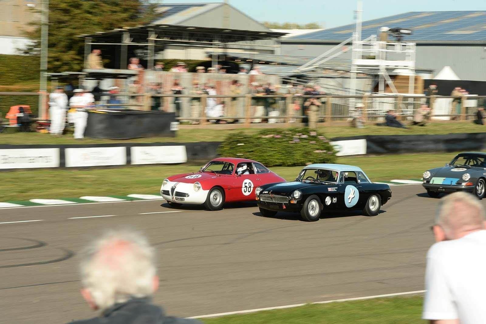 Saturday brought the Goodwood Revival debut for DK’s Harvey Stanley in 2 GLL the ”Ilford Films 500” MGB. Harvey had put the MG 7th on the Fordwater Trophy’s starting grid, lining up between Ben Mitchell in another MGB, Tim Layzell in the TVR Grantura and with Mark Sumpter’s 911 close behind. Between Friday’s qualifying and Saturday’s race, the DK team had made some handling adjustments which paid off in the race. A good start saw Harvey biting on the heels of the leading group of Elan, Marcos Mini and TR4 - but as the opening laps unfolded the MGB couldn’t live with the pace of these faster cars. A thrilling three way battle then ensued between the MGB, TVR and Porsche with positions swapping each lap, at the flag Harvey took 4th by just 1.3 seconds with the Porsche a further 0.5 seconds behind! The next MGB was a further 30 seconds behind.