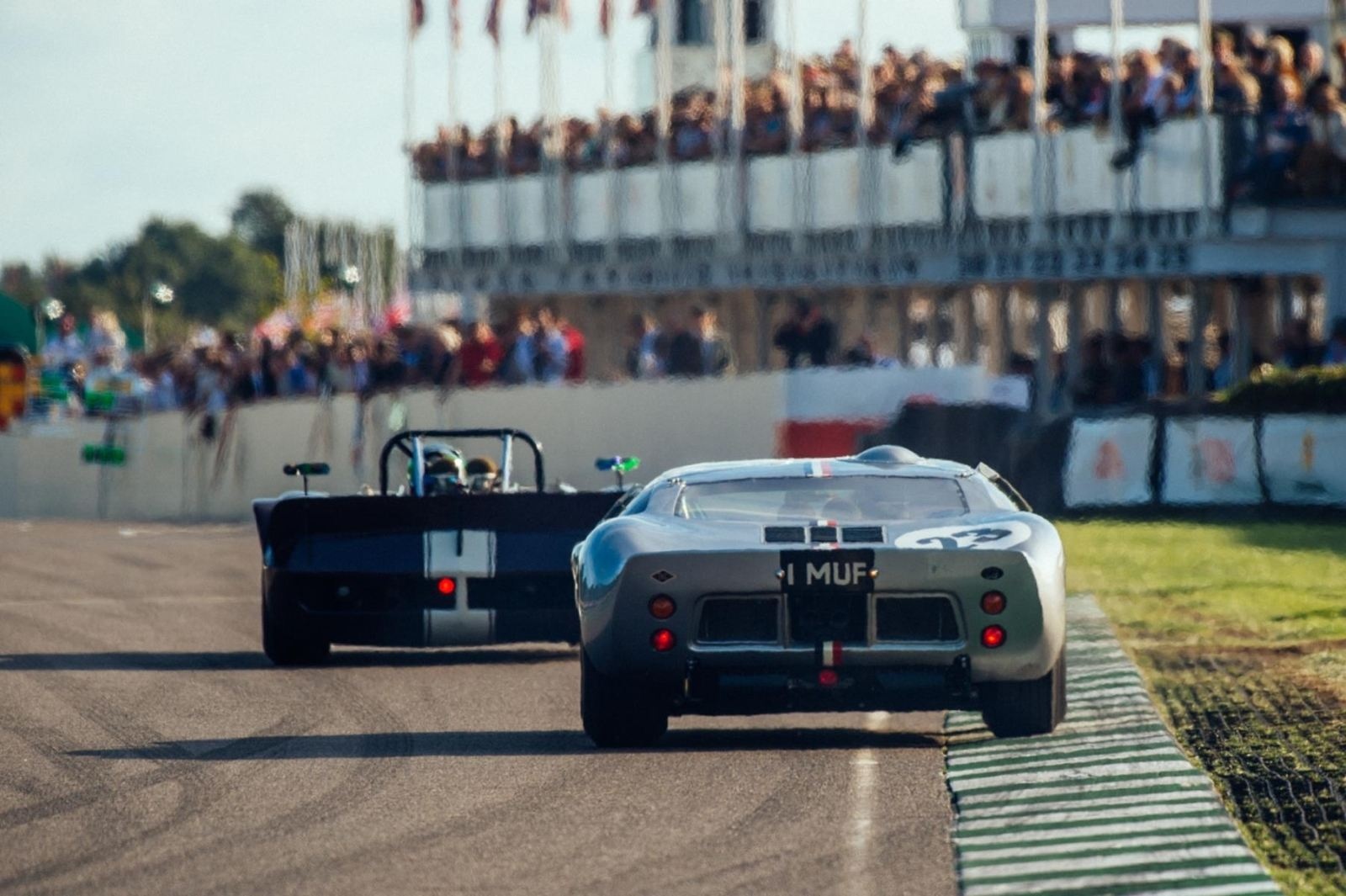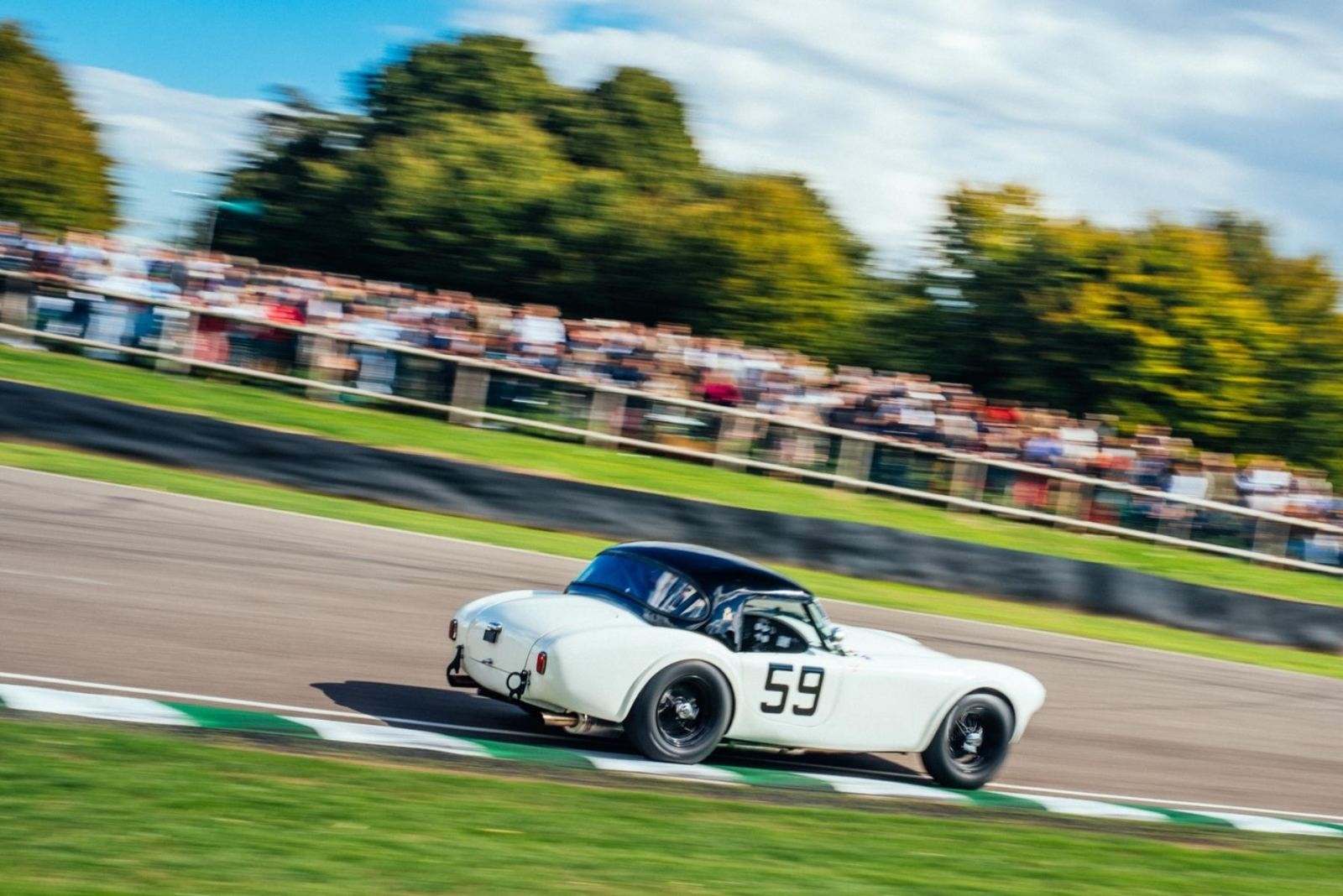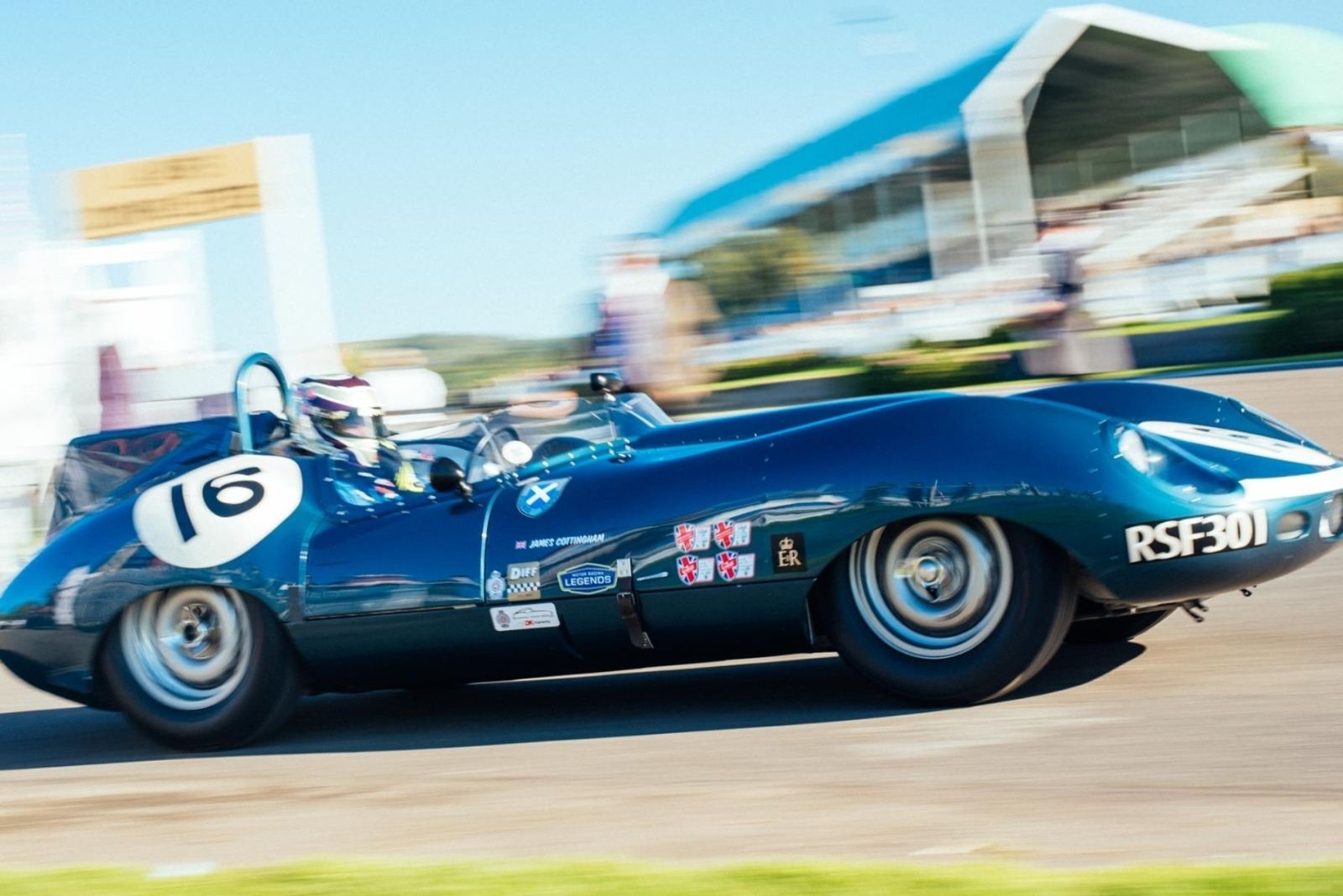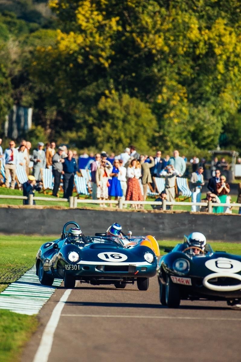 Signing off the weekend in style, James was back out on track once again for the Sussex Trophy at the wheel of the blue and white Tojeiro-Jaguar, looking to retain the title he scored last year. An incredibly tight qualifying session had seen the top-4 covered by just 0.15s, and James started from the second row of the grid looking to make moves through the field. With the sun low over the circuit as the race progressed, James made an immediate move for position, before steadily closing in on the podium positions. With less than 15-miniutes remaining, the Tojeiro-Jaguar made a pass for 3rd, and then, with the leading Ferrari retiring inside the final 10-minutes, James was on the hunt for the race lead. A bold move around the outside at the back of the circuit moved James into the lead with just 4 minutes on the clock, and he would then hold on before the race was brought to an early conclusion with a red flag with 2 minutes remaining. The result ensured James and the Toijero-Jaguar retained the trophy for a second year, and concluded a glorious weekend of racing at one of the headline events of the season.