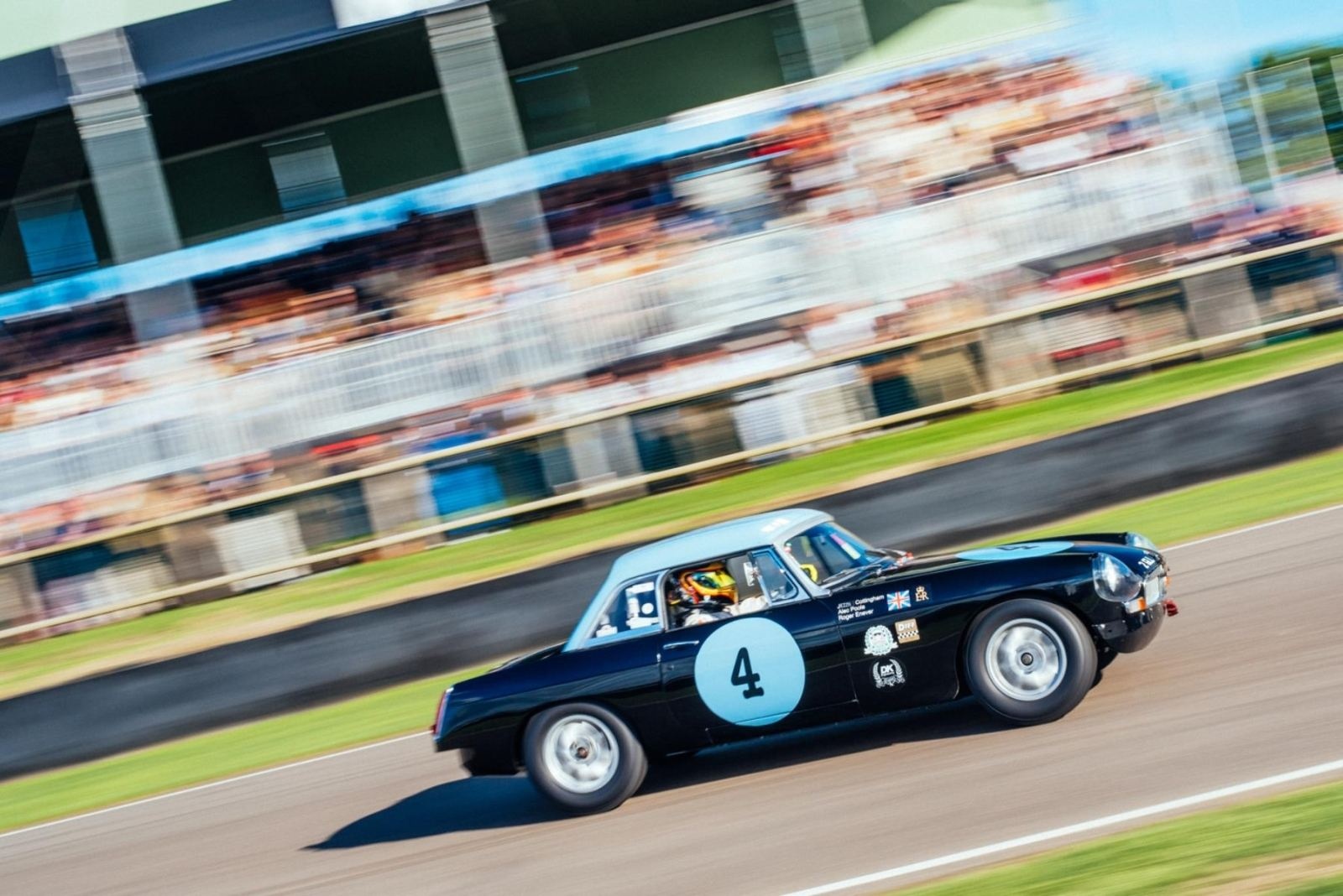 Racing in a selection of iconic models from the 1950s and 60s, the DK Engineering drivers of James, Jeremy and young Bertie Cottingham put on a show around the sun-bathed Goodwood Motor Circuit. James drove an example of the iconic Ford GT40 to 8th place in the Whitsun Trophy, while Jeremy finished just outside the fiercely contested top-10 of the Lavant Cup at the wheel of an MG B.
