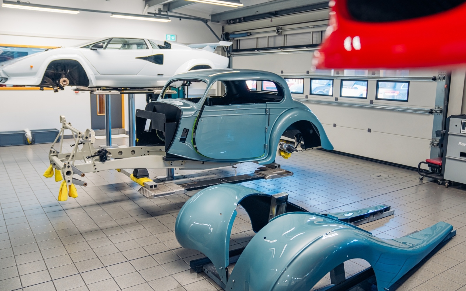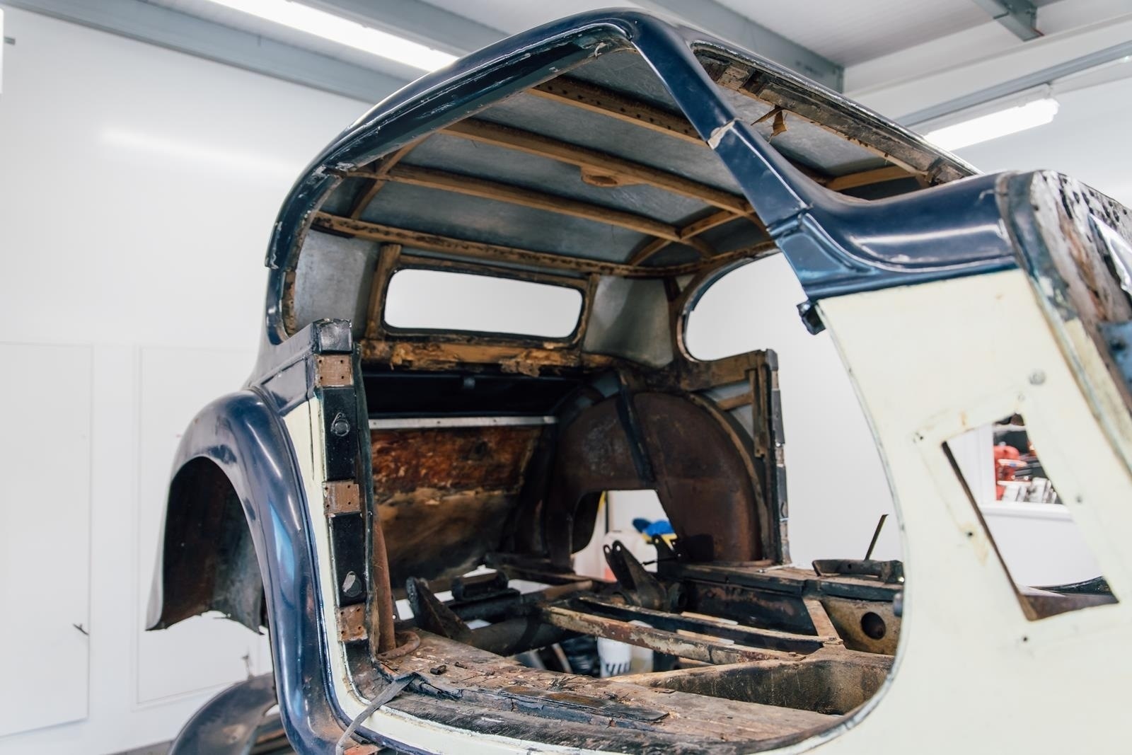 We have obtained the 2 seater Coupe with V12 engine believed to be the last example built which has some period rally history and was actually once tested by Dennis Jenkinson with a glowing report on handling. Moving in uncharted waters we have completely stripped the car and sent it for ash frame and aluminium body attention by our specialist colleagues at Bodylines in Northampton. We are working on the overhaul of the numerous mechanical components and undertaking further historical research.