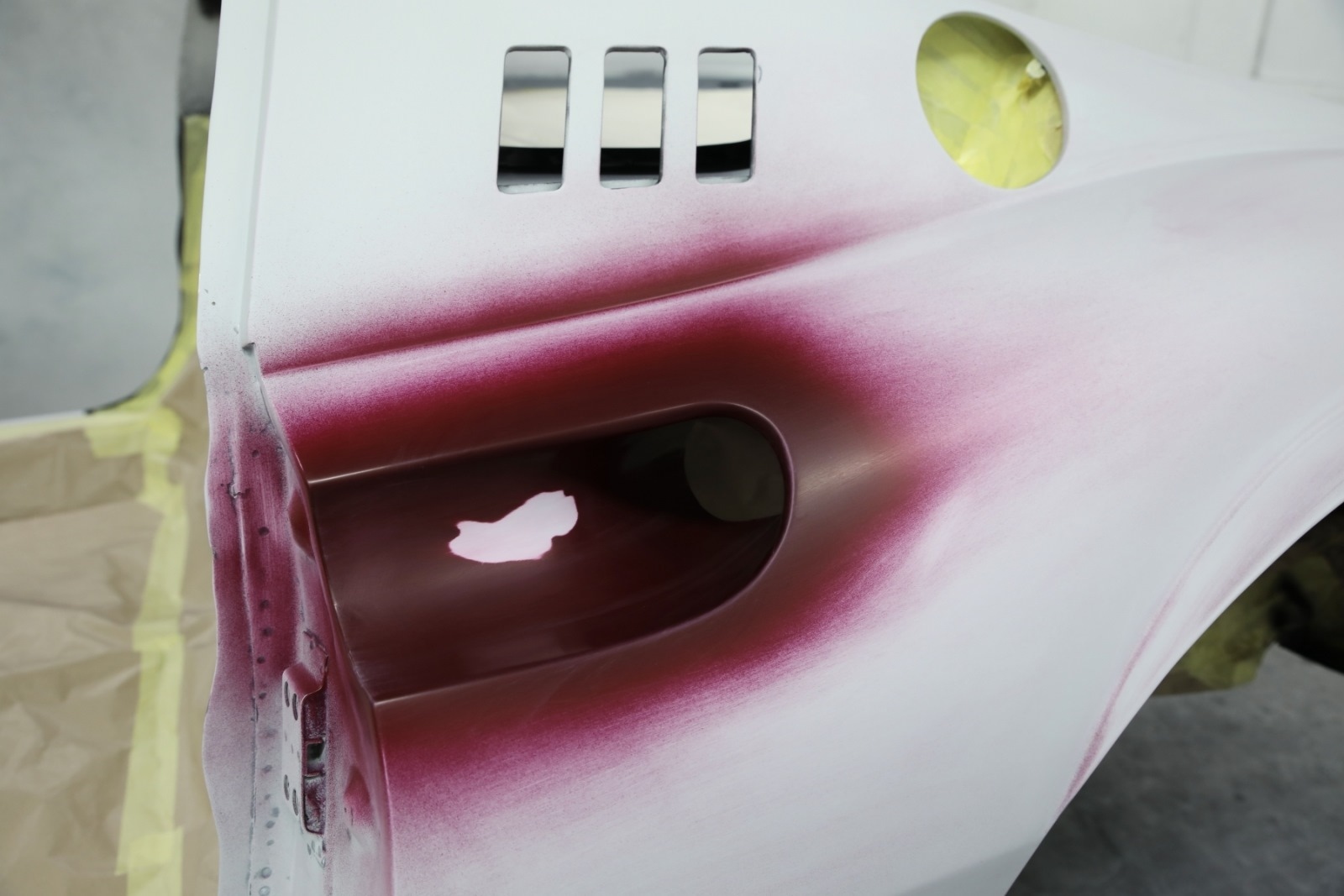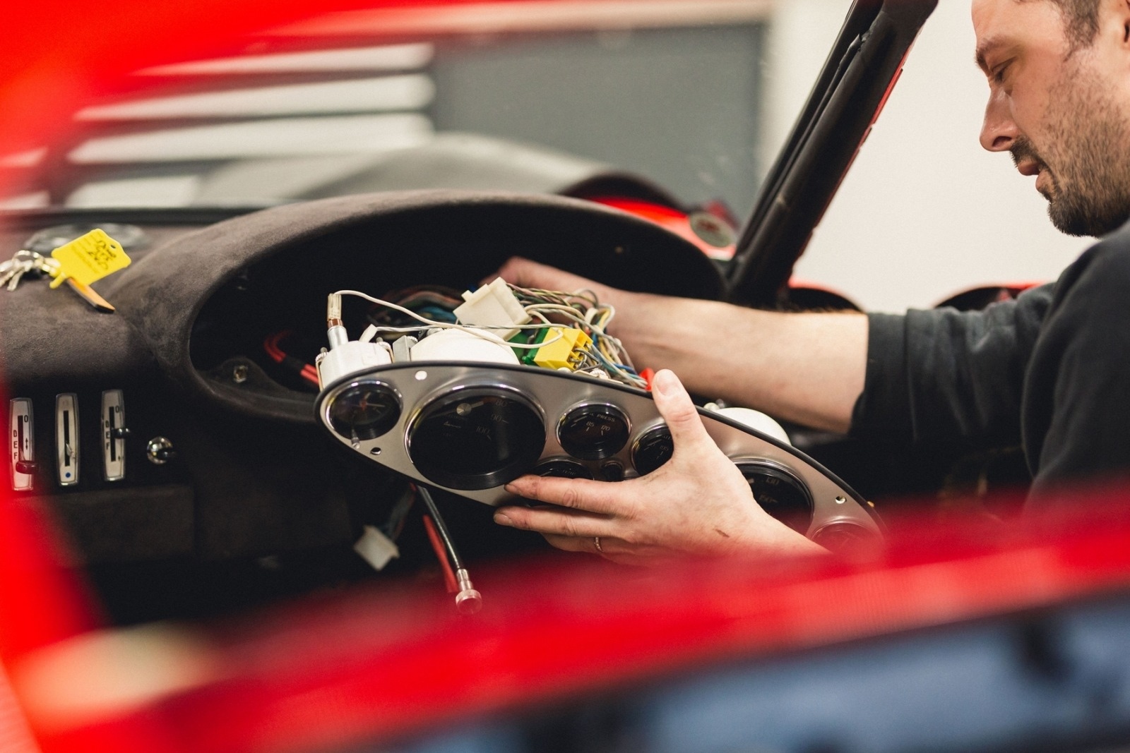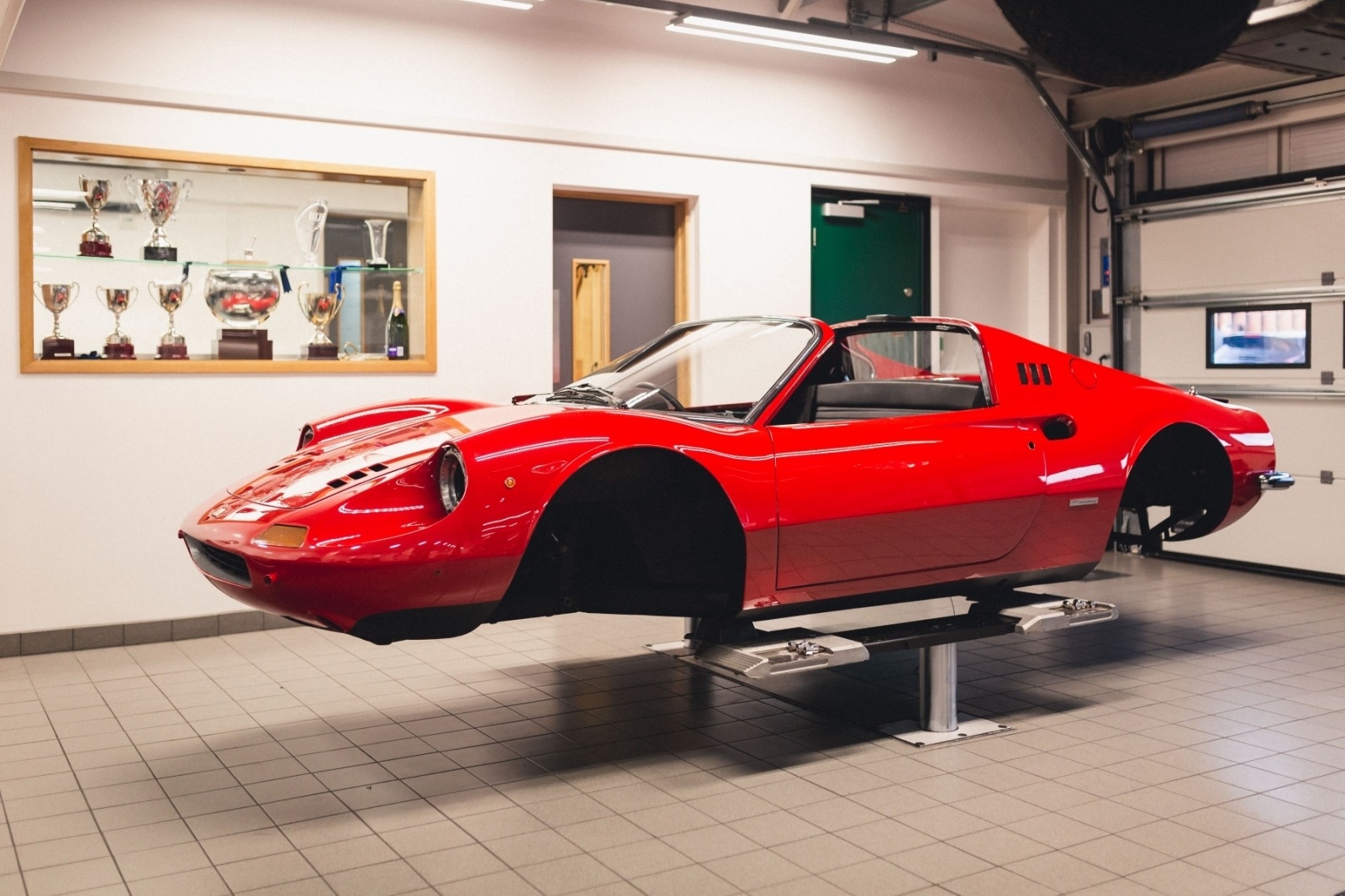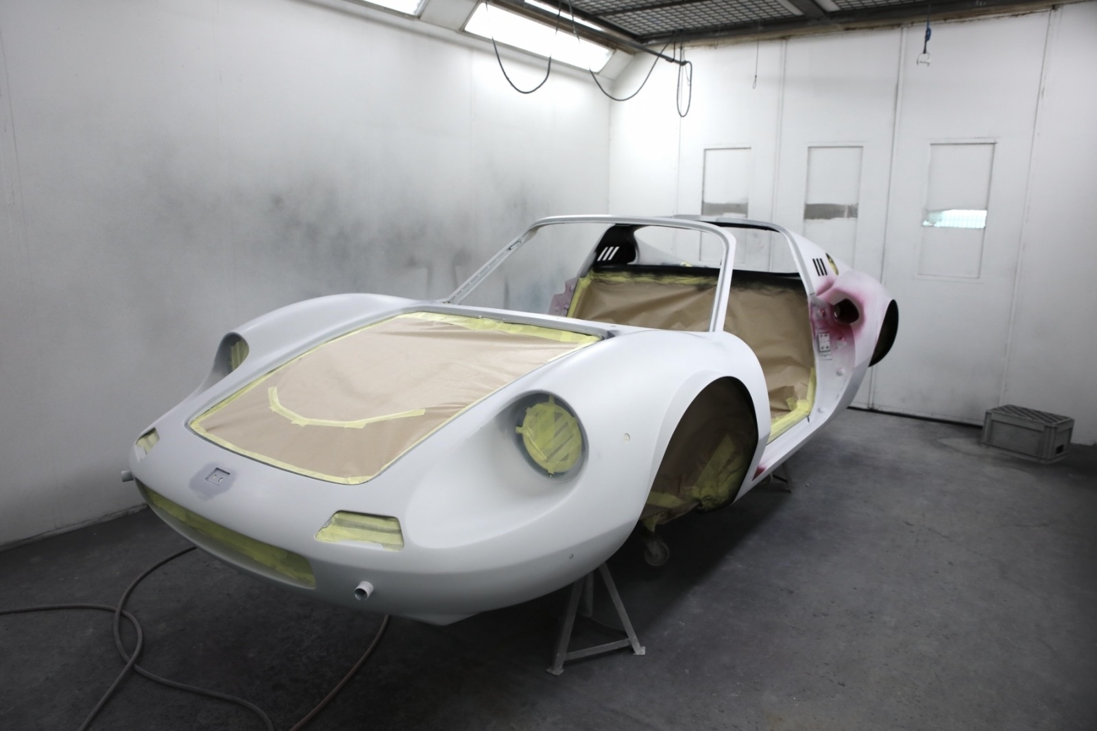 The latest custodian required the very best GTS that could be found and as such, commissioned a restoration by DK Engineering to bring the car up to world class standards. Having spent several years in a brighter red hue, it was decided the car should return once more to its original configuration. The car was stripped down at DK ahead of the metalwork stage; all paint removed and taken back to bare metal to ensure the shape and condition of the car were the best possible basis for the restoration care of Bodylines