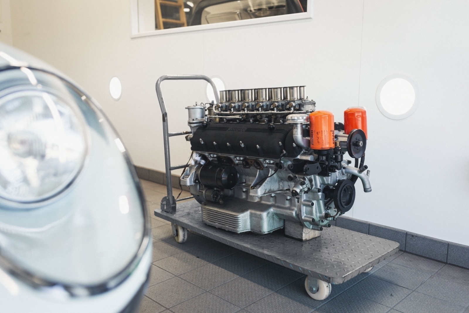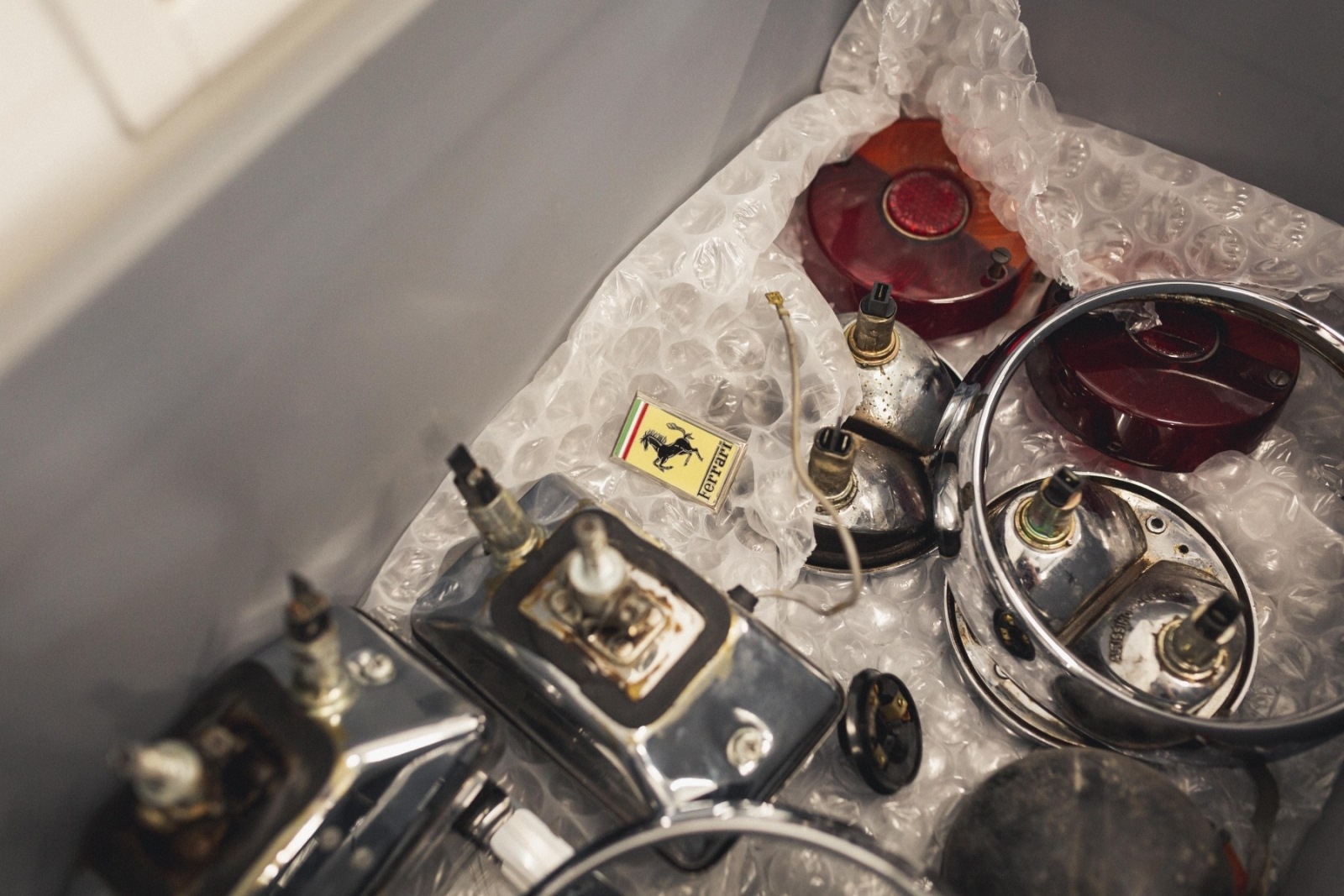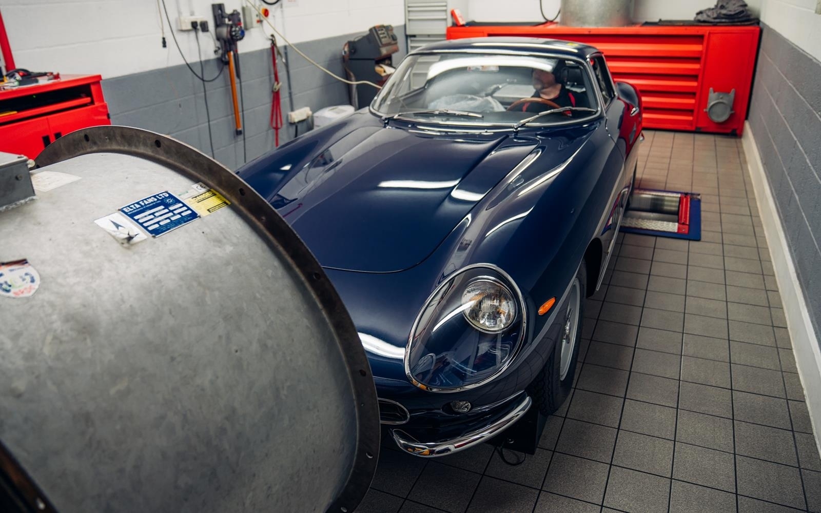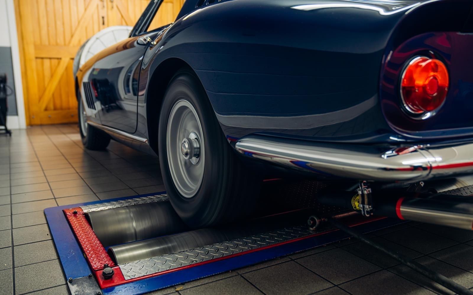 With the bodywork completed, the car returned to DK for a dry fit before the bumpers were sent to be chromed. With all pieces aligned, the car was sent to renowned SprayTec of Northampton to be returned to its original Blu Scuro Metallizzato hue. In late 2021, resplendent once more in its original colour scheme, the 275 entered final assembly at DK. With the engine, gearbox and suspension components re-added, the car left us for the final trip prior to completion. Interior masters O'Rourke Coachtrimmers full returned the interior to its original build specification of grey leather hide. With the winter weather upon us, the car received its first post-restoration miles on our inhouse dyno, safe from prying eyes and salted roads.