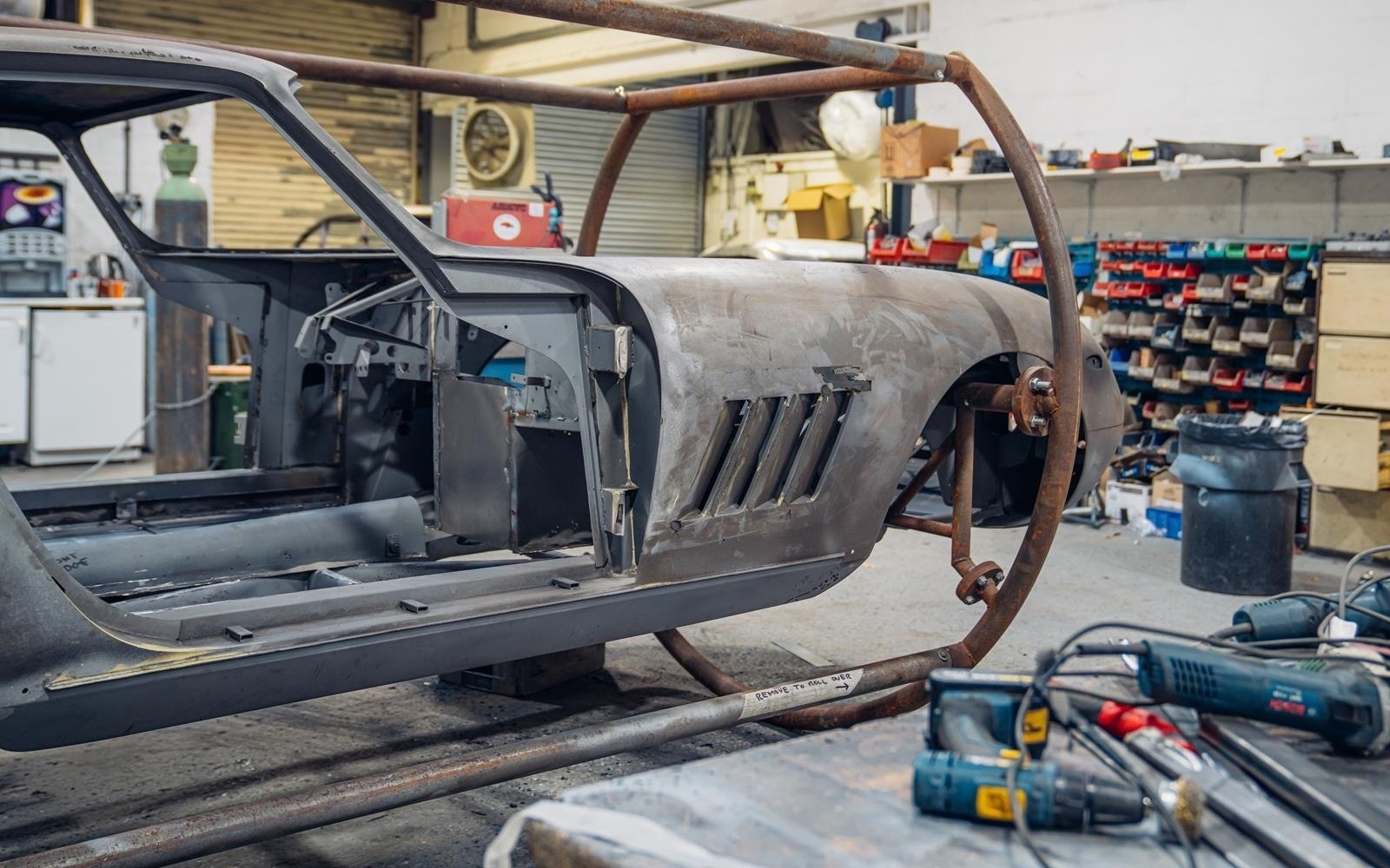 In late May 2020, we commenced a full bare metal restoration. We have chronicled our progress both with photographs at every stage, and videos to illustrate the works carried out. After disassembly, the paint was removed and Bodylines of Northampton tirelessly reshaped and reworked the body to remove the later additions and to return the car to its original specification. At the same time, the engine was rebuilt in-house ready to be placed in the car in the closing stages of restoration.